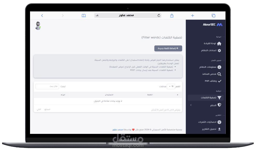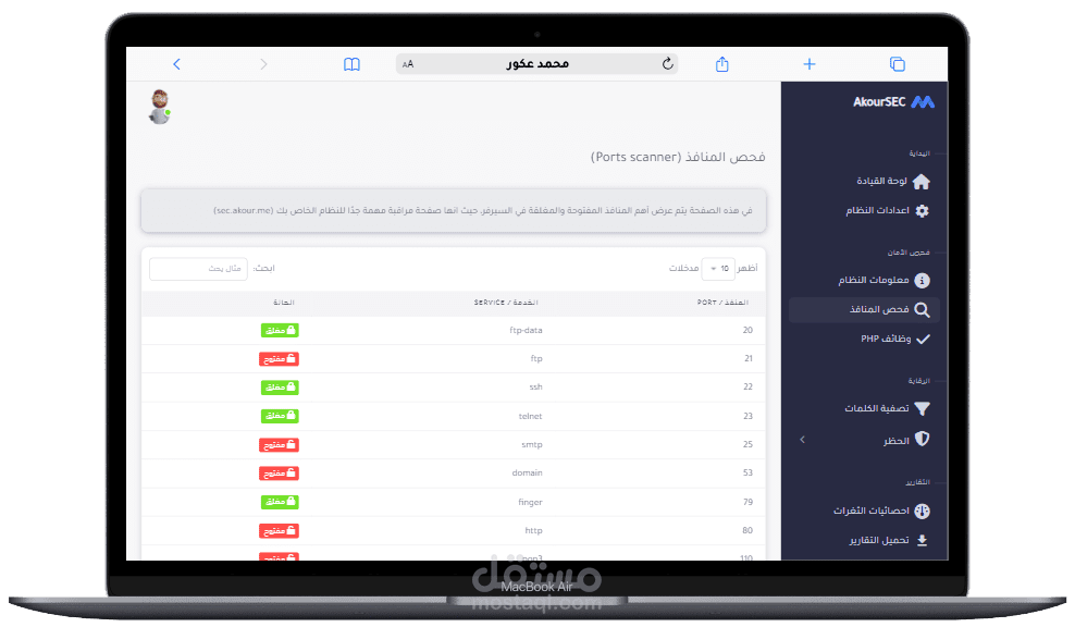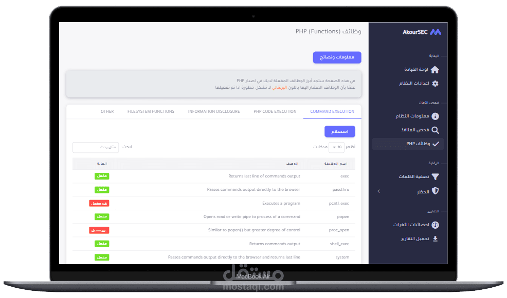 يتضمن مشروع AkourSEC مجموعة من الميزات والوظائف مثل: