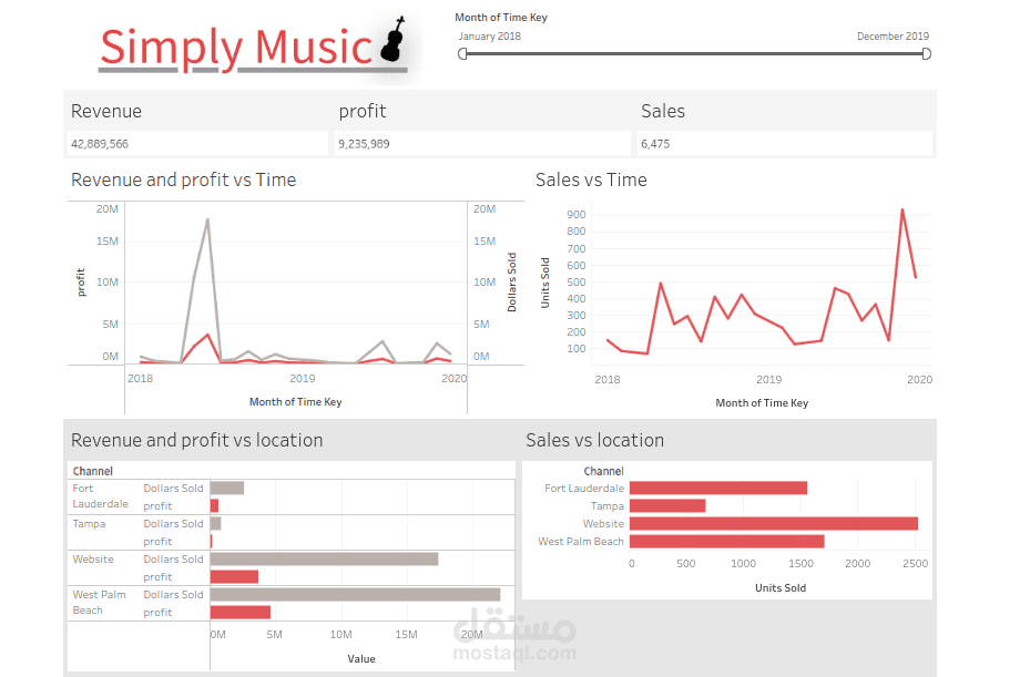Simply Music Dashboard في Tableau تعرض بيانات مبيعات موسيقية بطريقة بديهية وتفاعلية. توفر اللوحة نظرة عامة على المبيعات، الاتجاهات الموسيقية الشائعة، والأداء حسب النوع أو الفنان، مما يساعد المستخدمين على اتخاذ قرارات تجارية أفضل.