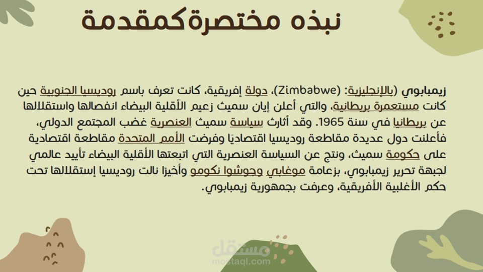 بحث شيق في شكل برزنتيشن عن دولة زيمبابوي