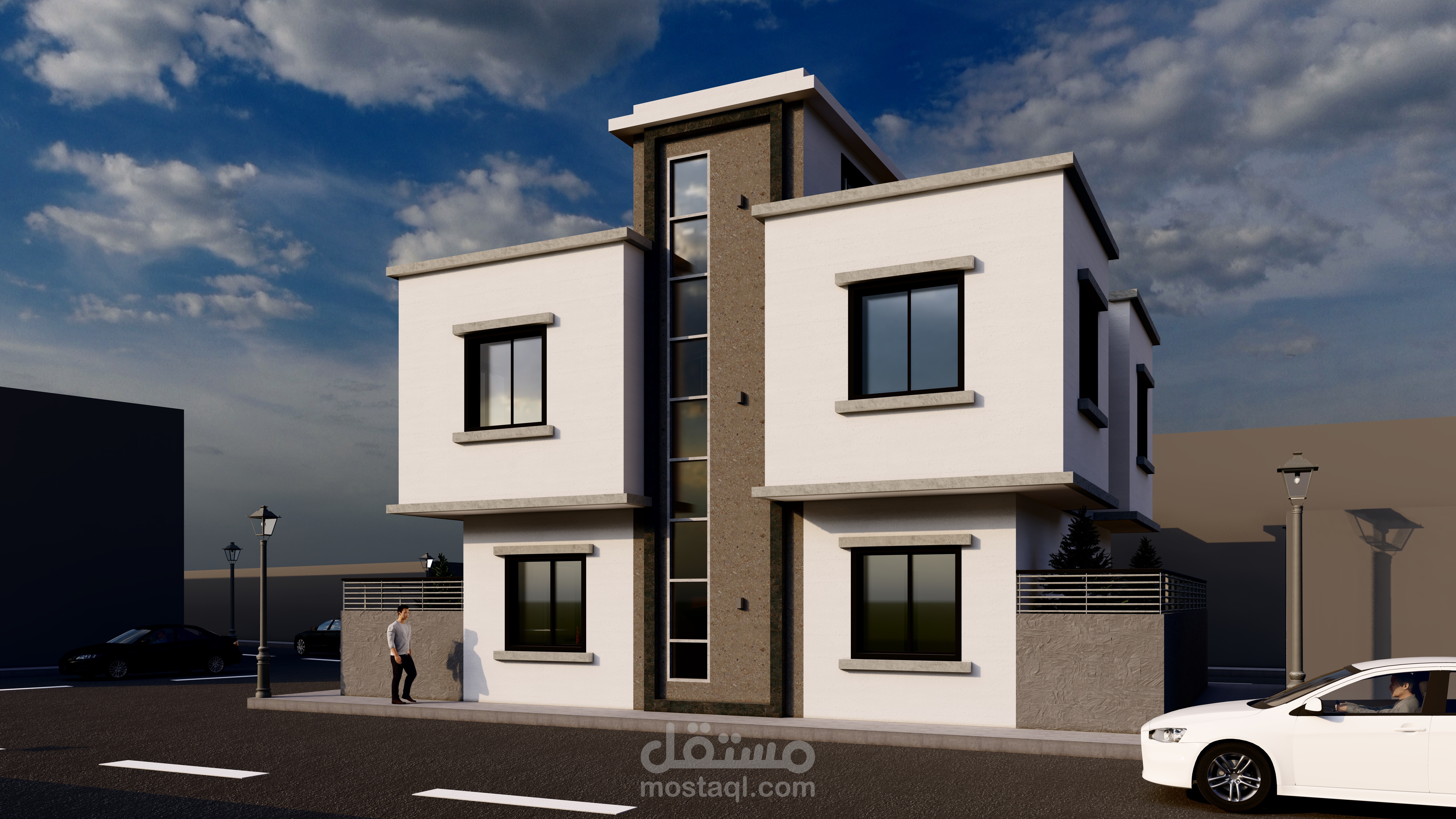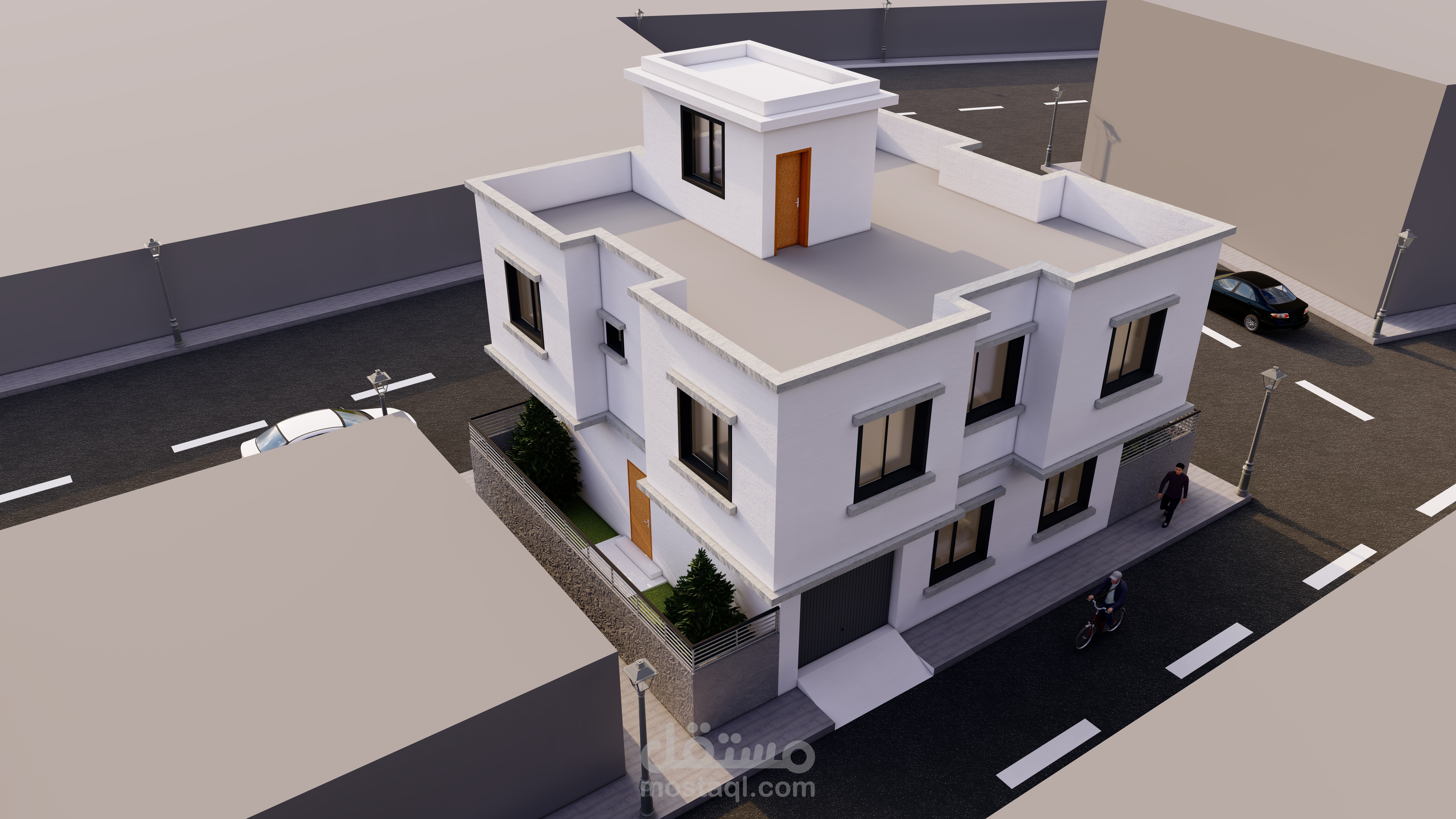 مكونة من طابقين أرضي للمعيشة و علوي مخصص لغرف النوم (فضاء خاص)