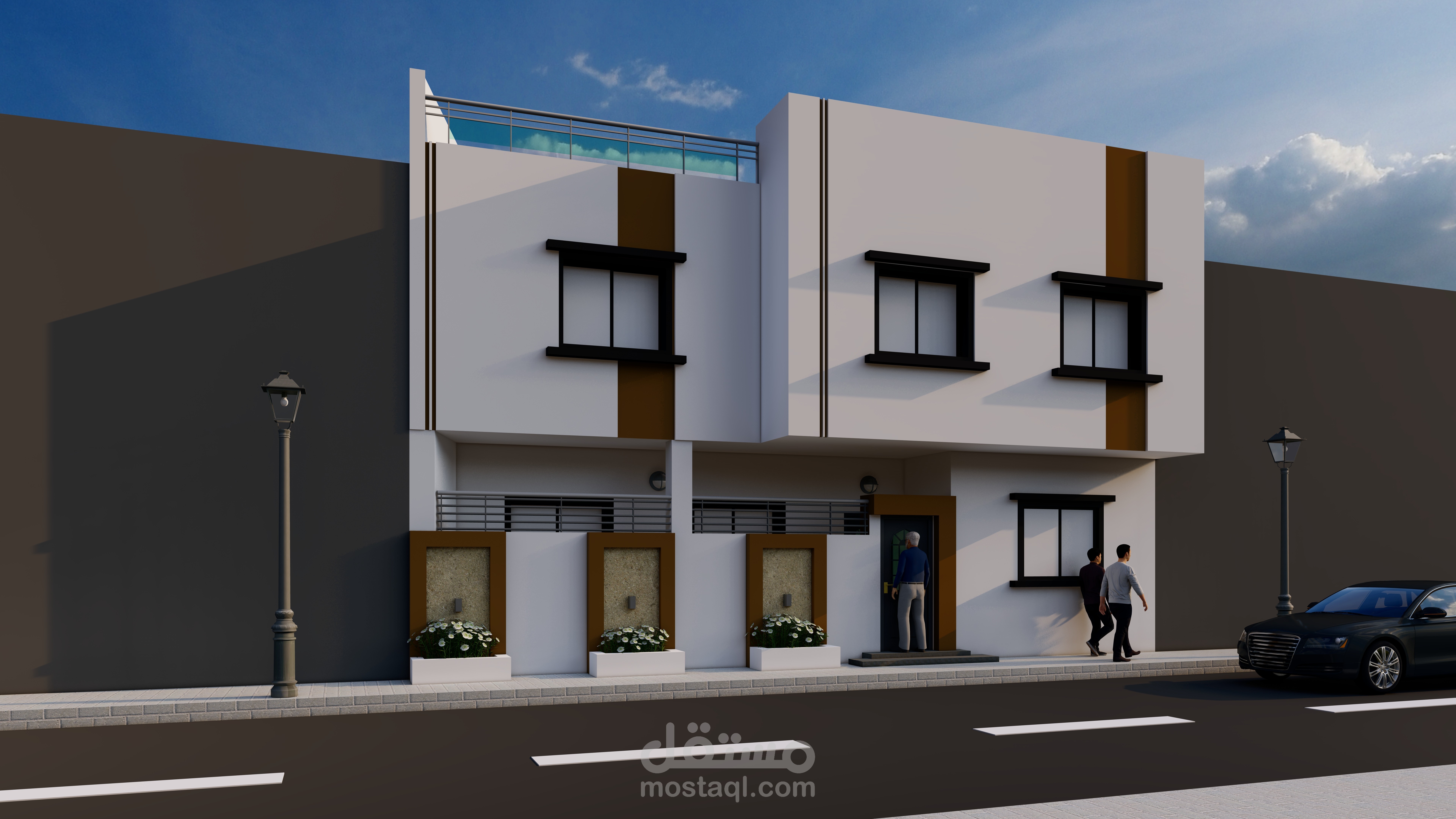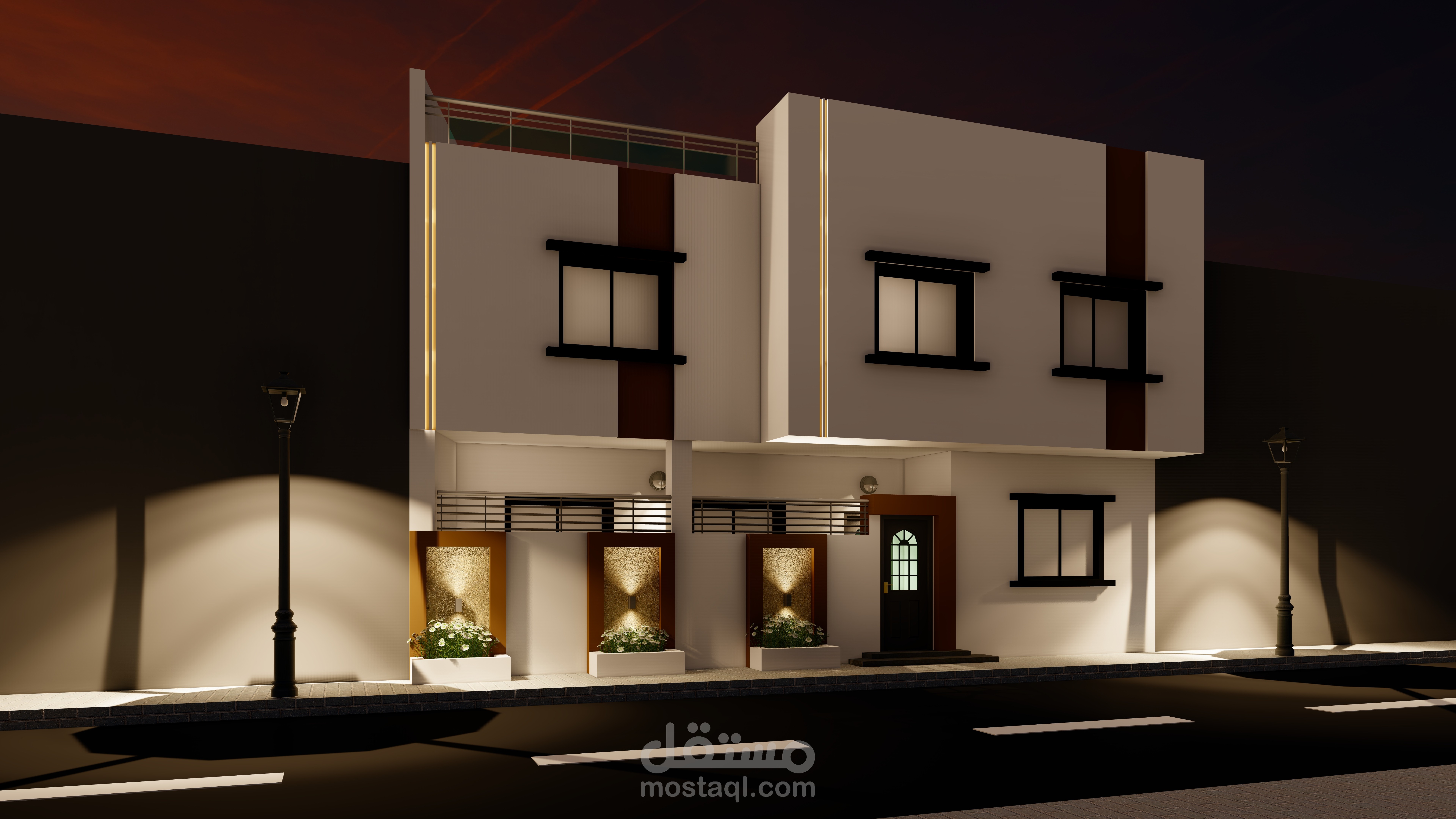 مكونة من طابقين أرضي للمعيشة و علوي مخصص لغرف النوم (فضاء خاص)