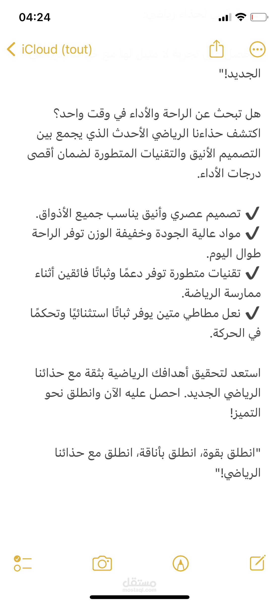 يتميز هذا الإعلان بتقديمه لحذاء رياضي يجمع بين الأداء الفائق والأناقة العصرية، مما يضمن للمستهلكين تجربة استثنائية ومريحة أثناء ممارسة الرياضة. يتميز الحذاء بتصميم خفيف الوزن يوفر الحركة الطبيعية والثبات، بالإضافة إلى التقنيات الحديثة التي توفر دعمًا مثاليًا للقدمين في كل خطوة. يتناول الإعلان بشكل مباشر وواضح الفوائد الرئيسية للحذاء، مما يساعد العملاء المحتملين على فهم قيمته وأهميته في تحقيق تجربة رياضية مميزة. بفضل هذه الميزات، يعتبر هذا الإعلان خيارًا مثاليًا للأفراد الذين يبحثون عن حذاء رياضي يجمع بين الأداء الفائق والأناقة العصرية.