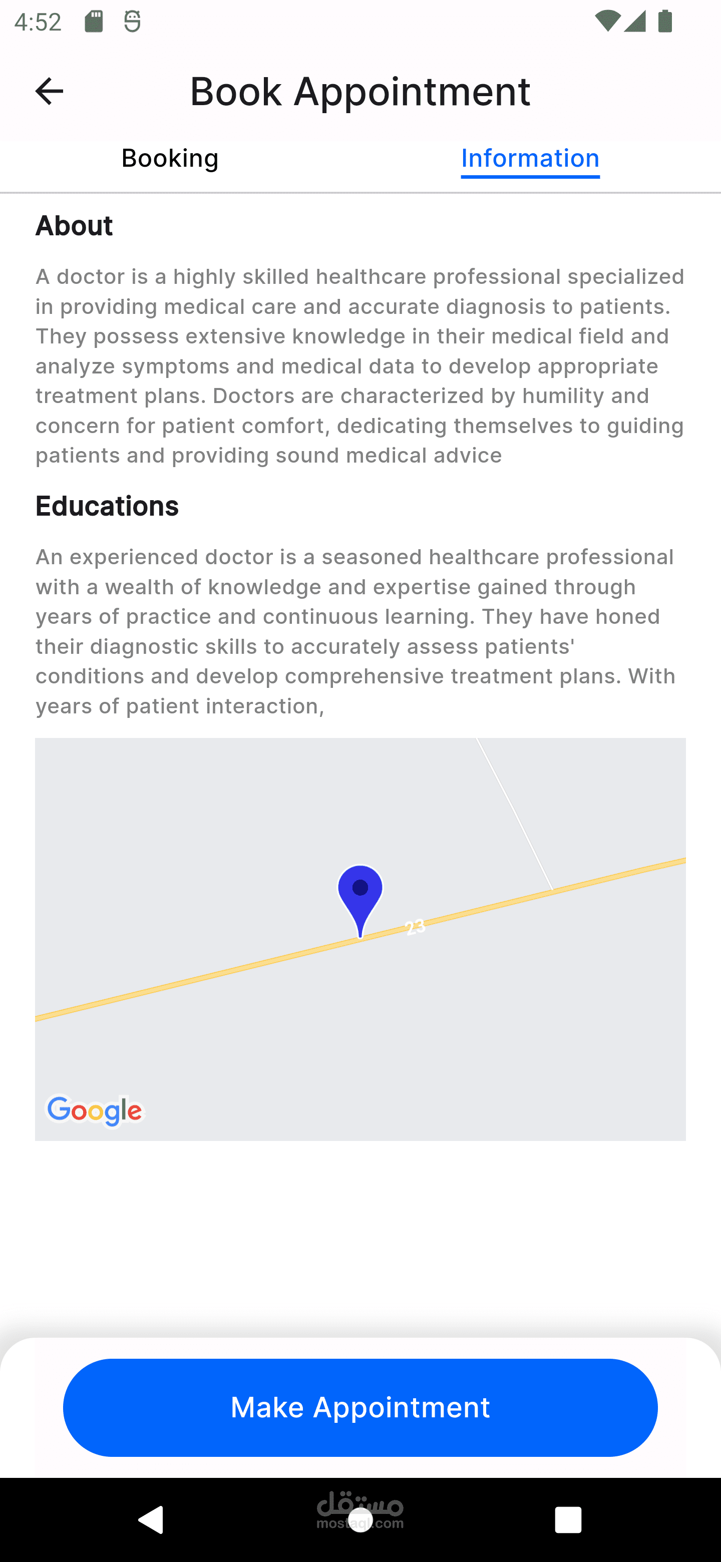 التطبيق الأول هو منصة متكاملة لإدارة المواعيد الطبية وتسهيل عملية الحجز للمرضى. يتميز بواجهة سهلة الاستخدام وخريطة تفاعلية تعرض جميع العيادات المتاحة مع تفاصيلها ومواعيد العمل وتقديم خدمات الحجز عبر بكل سهولة . كما يتيح للمستخدمين إمكانية إدارة مواعيدهم وتحديدها وتعديلها بناءً على رغباتهم.