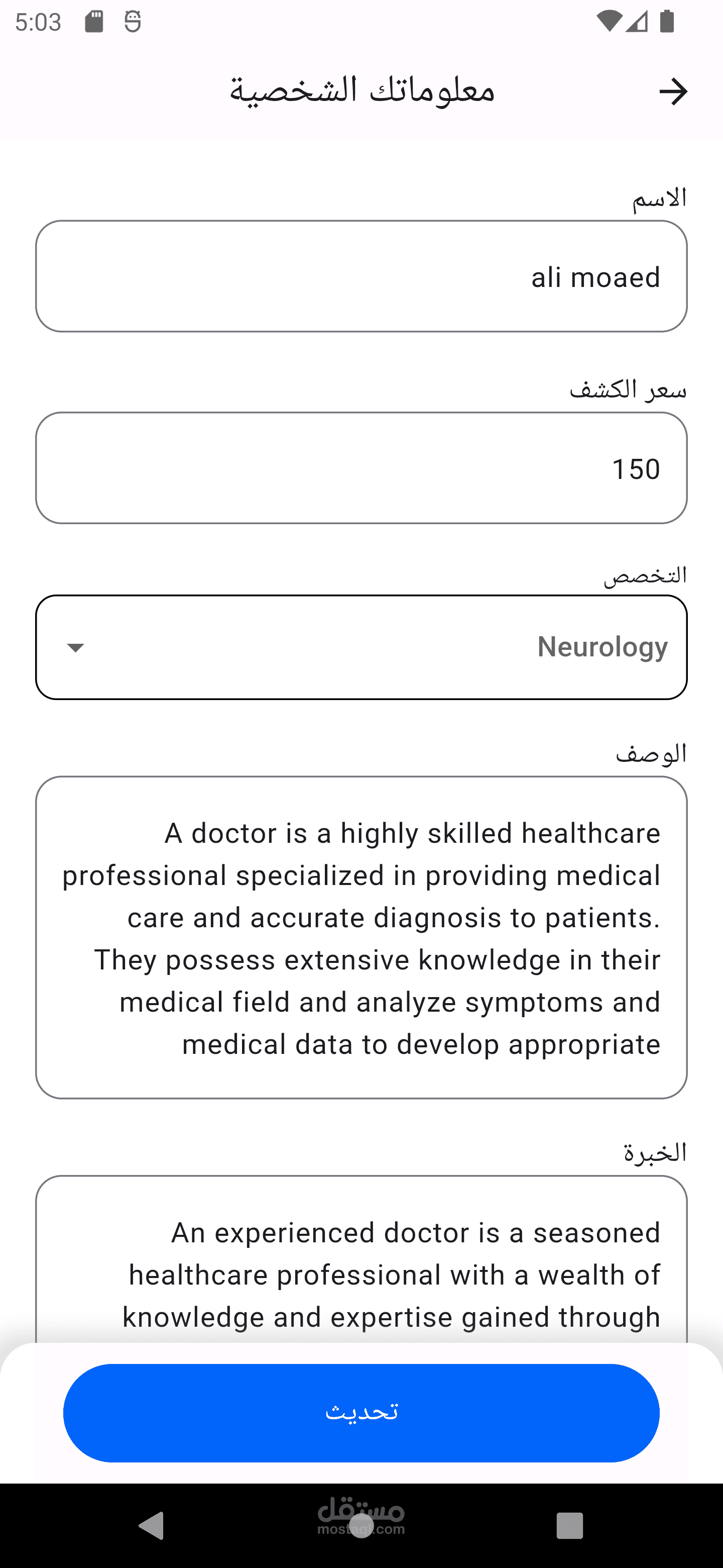 أما التطبيق الثاني، فهو تطبيق خاص بالأطباء يوفر واجهة مخصصة لإدارة مواعيد العمل ومتابعة المرضى بكل سلاسة وفعالية. يمكن للأطباء من خلاله تحديد مواعيدهم المتاحة ومراجعة الحجوزات الحالية، بالإضافة إلى الوصول الفوري إلى معلومات المرضى وتفاصيل حالاتهم الطبية لتقديم الرعاية الصحية المناسبة