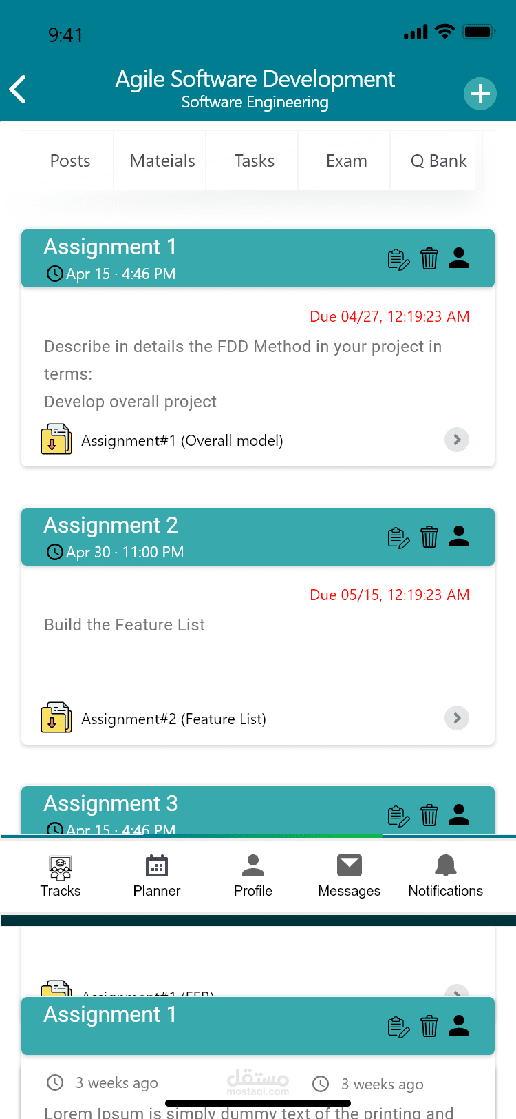 This mobile UI/UX design is tailored for an educational institution and covers all the necessary tasks