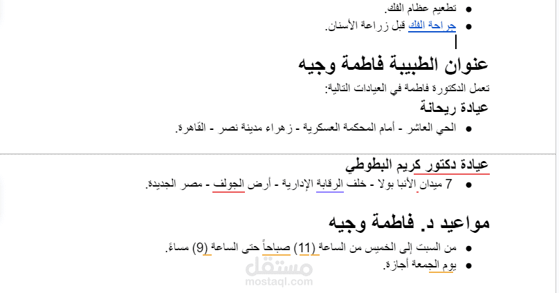 كتابة السيرة الذاتية والخدمات التي يُقدمها الأطباء والعيادات.