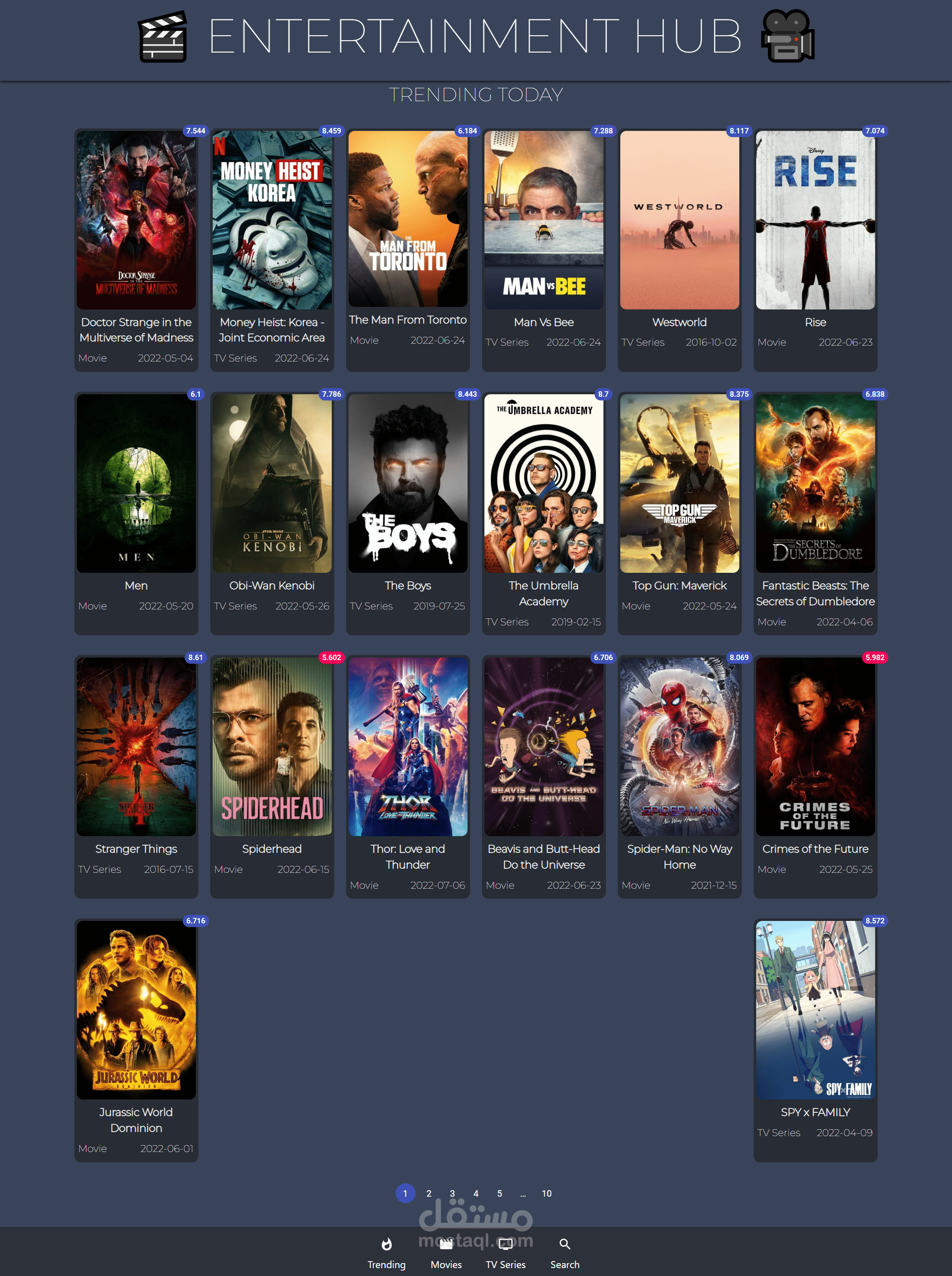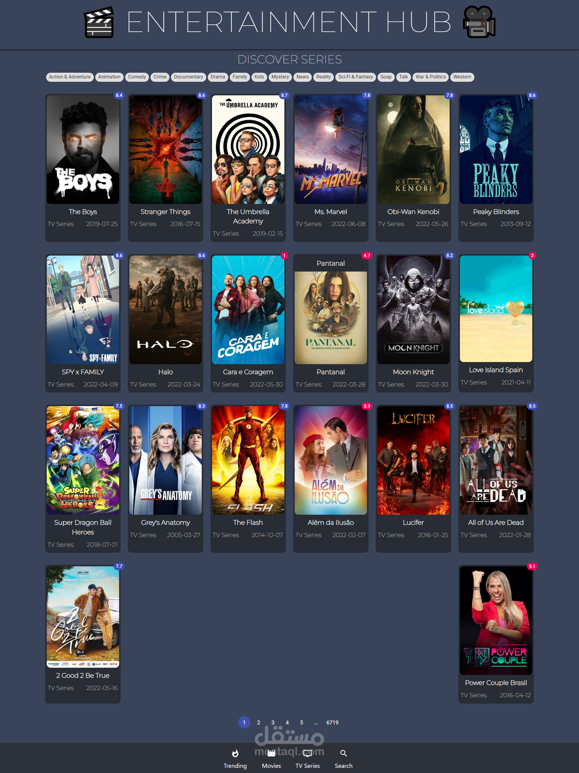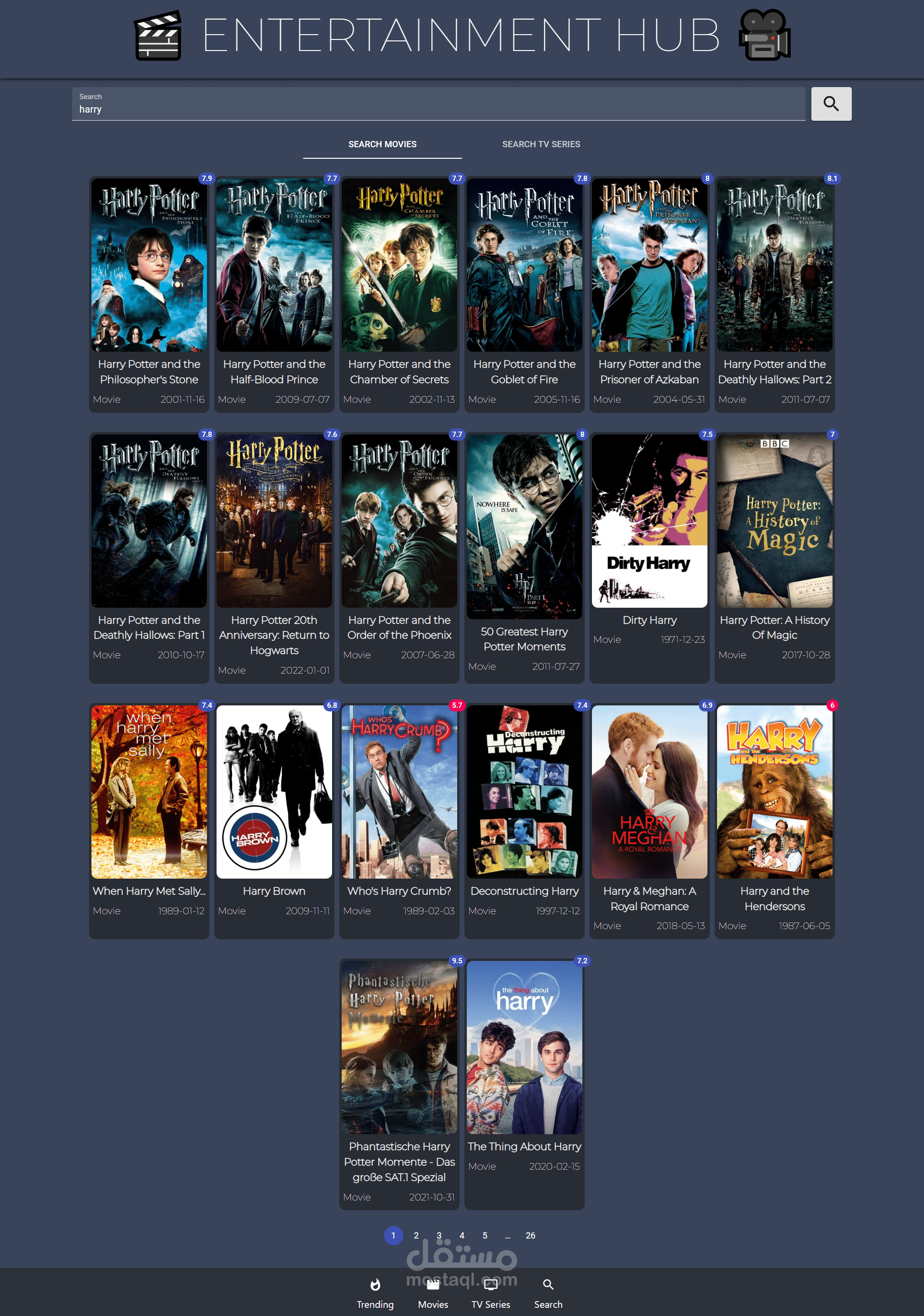 مكون من اكثر من صفحة للافلام و المسلسلات و صفحة للبحث فى الdata