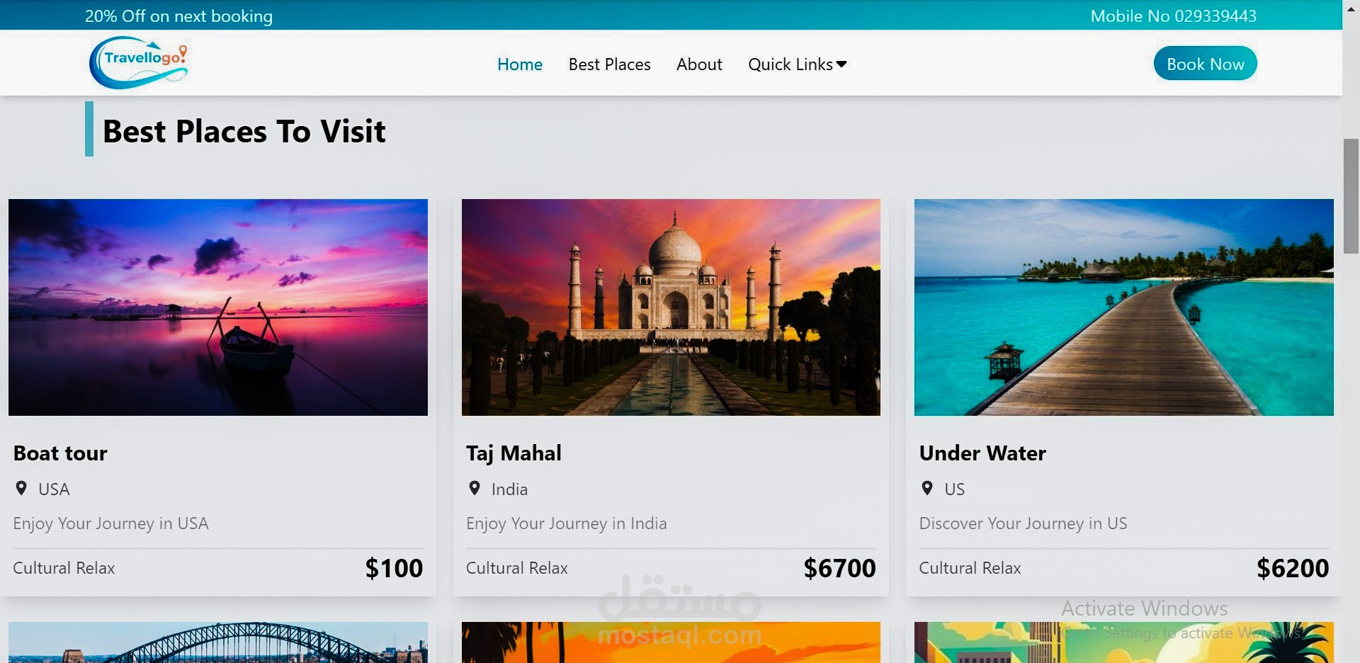 Responsive React ,tailwind ,javascript website for travel company