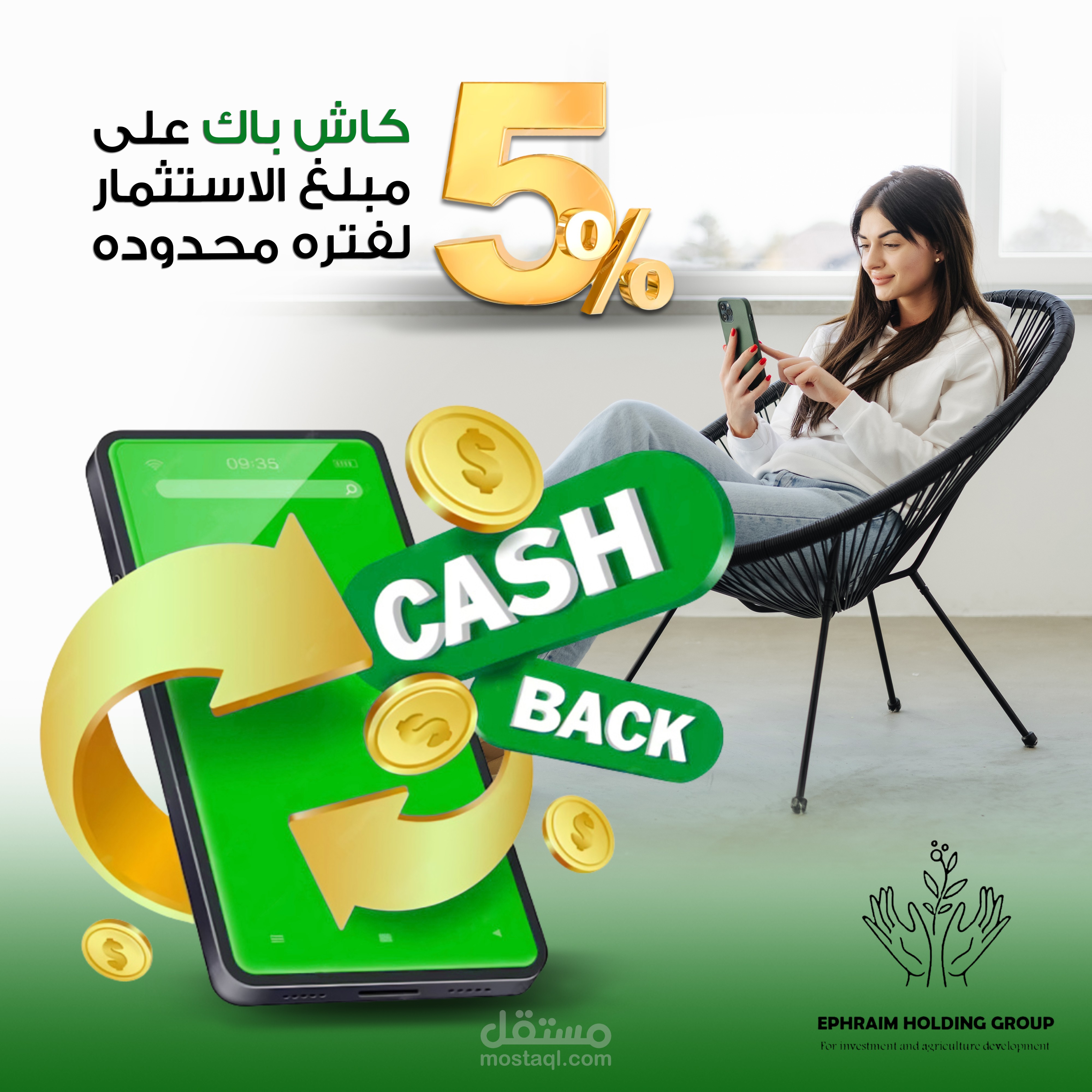 تصاميم سوشيال ميديا لشركة استثمار مرتبطة بالهوية البصرية لها