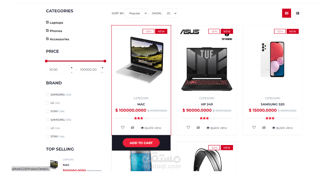 - **search & filteration:** يمكن للمستخدمين تصفية المنتجات بشكل ديناميكي حسب الفئة أو نطاق الأسعار، مع تحديثات تُعكس على الفور باستخدام AJAX.