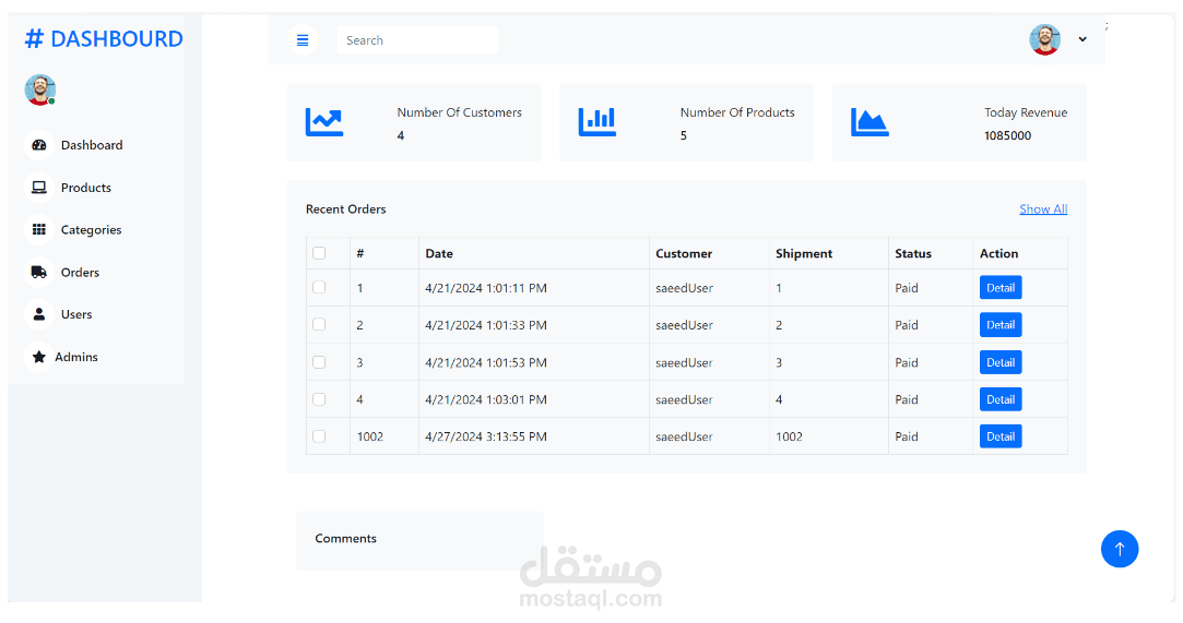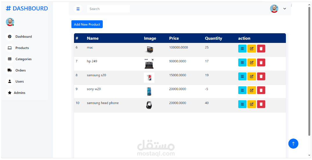 - ميزات المسؤول: إضافة أو حذف حسابات المسؤول، إدارة المنتجات والفئات.