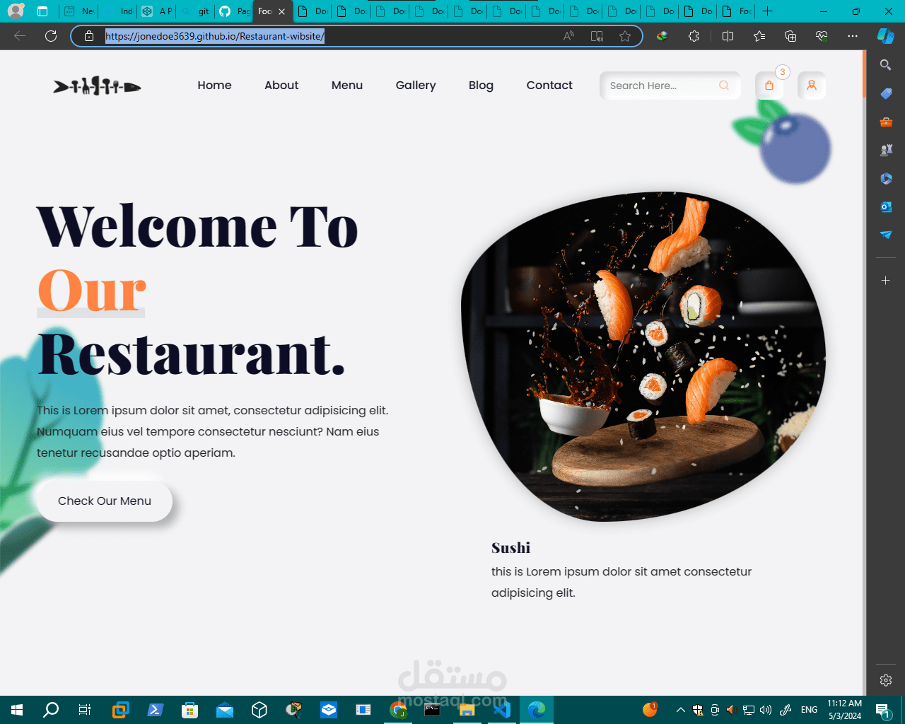 موقع "Restaurant-website" هو موقع على الإنترنت مخصص لتقديم خدمات ومعلومات حول مطعم معين أو شبكة من المطاعم. يهدف الموقع إلى جذب الزوار وتحفيزهم على زيارة المطعم وتجربة تجربة تناول الطعام الفريدة التي يقدمها.