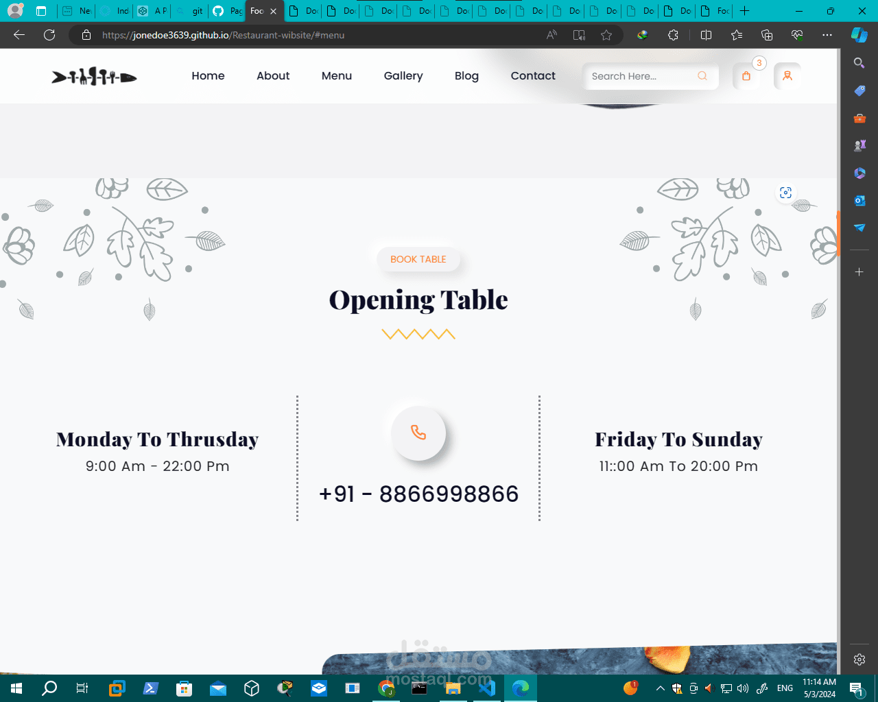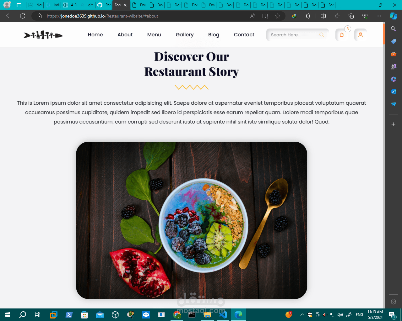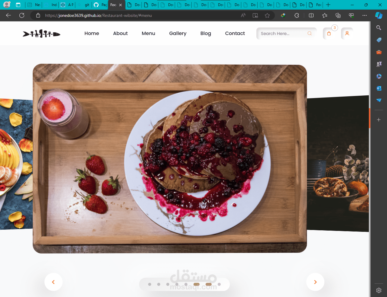 تصميم موقع "Restaurant-website" عادةً ما يتضمن العناصر التالية: