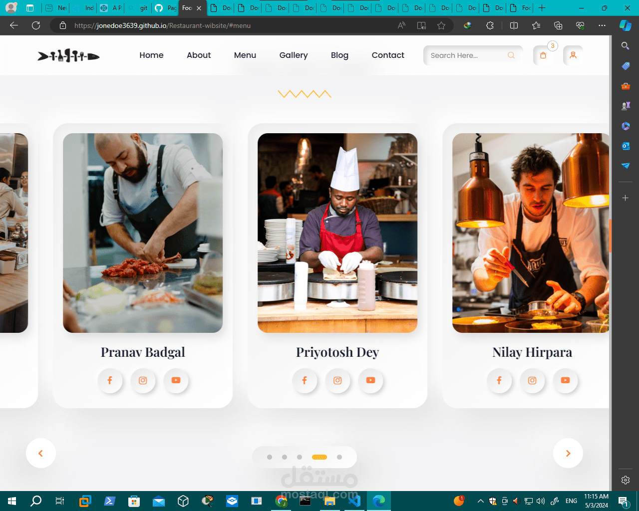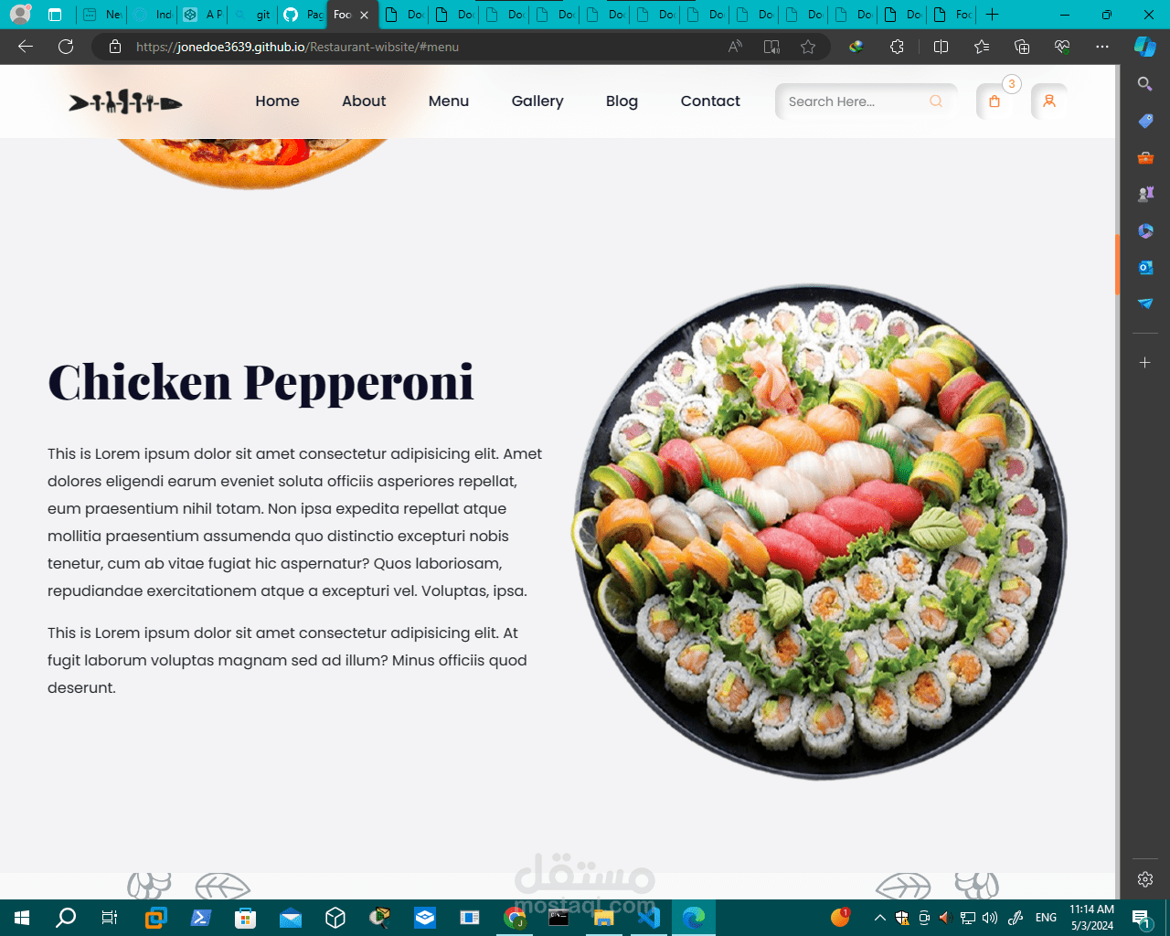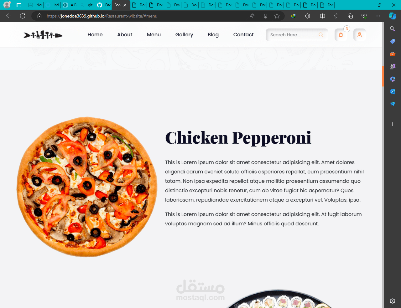 تصميم موقع "Restaurant-website" عادةً ما يتضمن العناصر التالية: