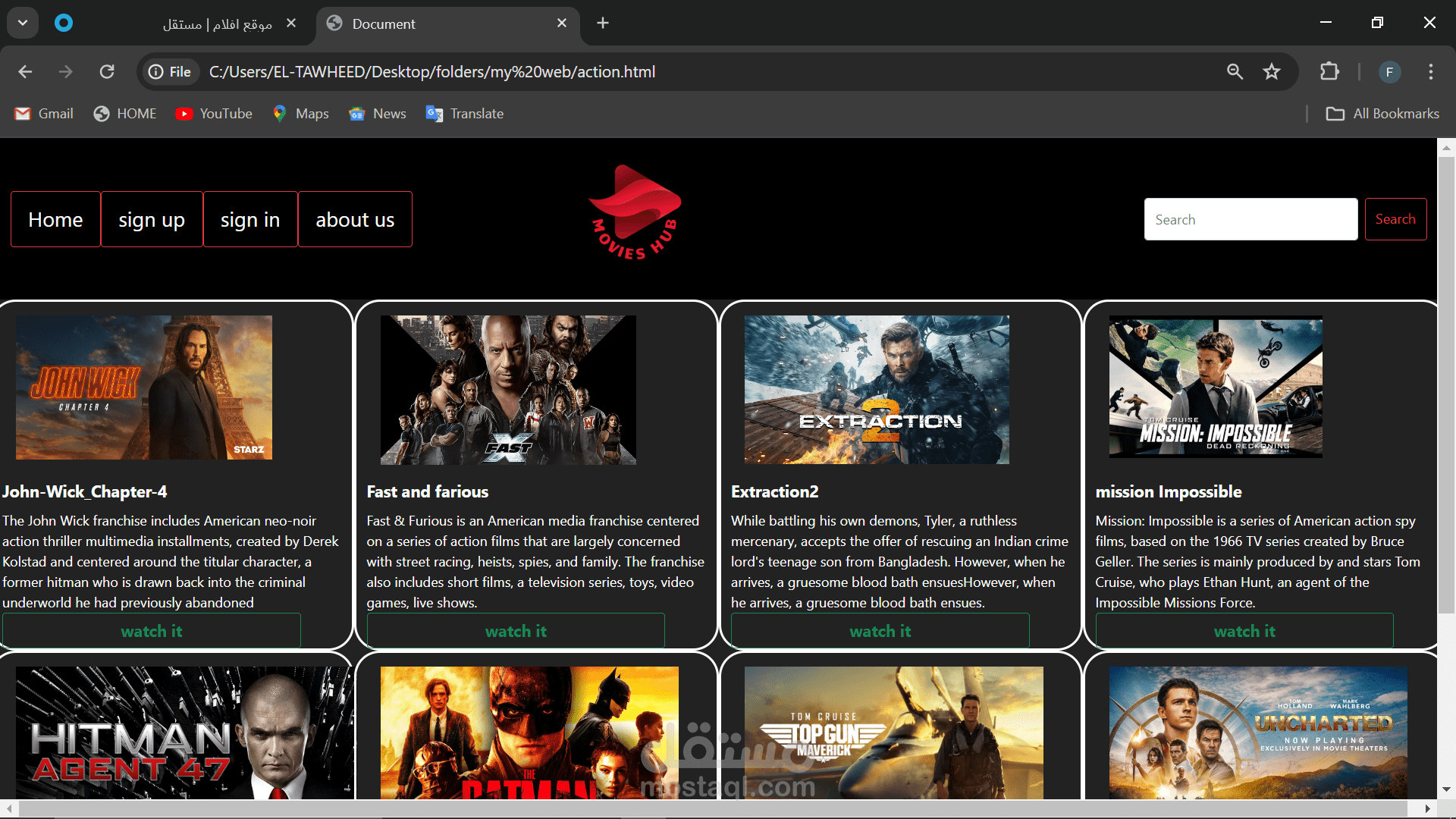 هذا موقع افلام لعرض الافلام الاجنبية قمت بتصميمه يوجد بالاسفل فيديو بسيط لتوضيحه