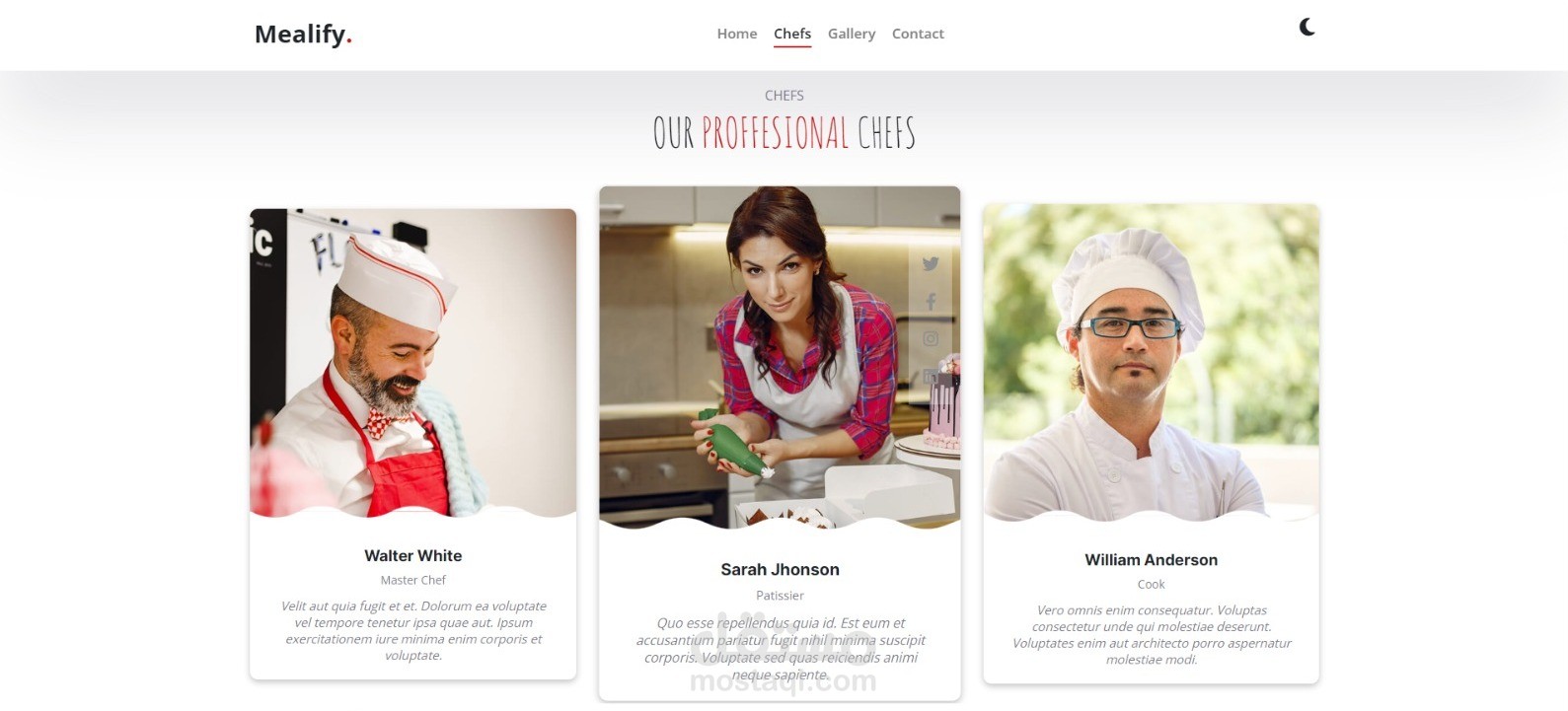building effective website of Mealify Landing Page and get more effective view from adding animation in each section on mouse hover, make a dark mode of a website