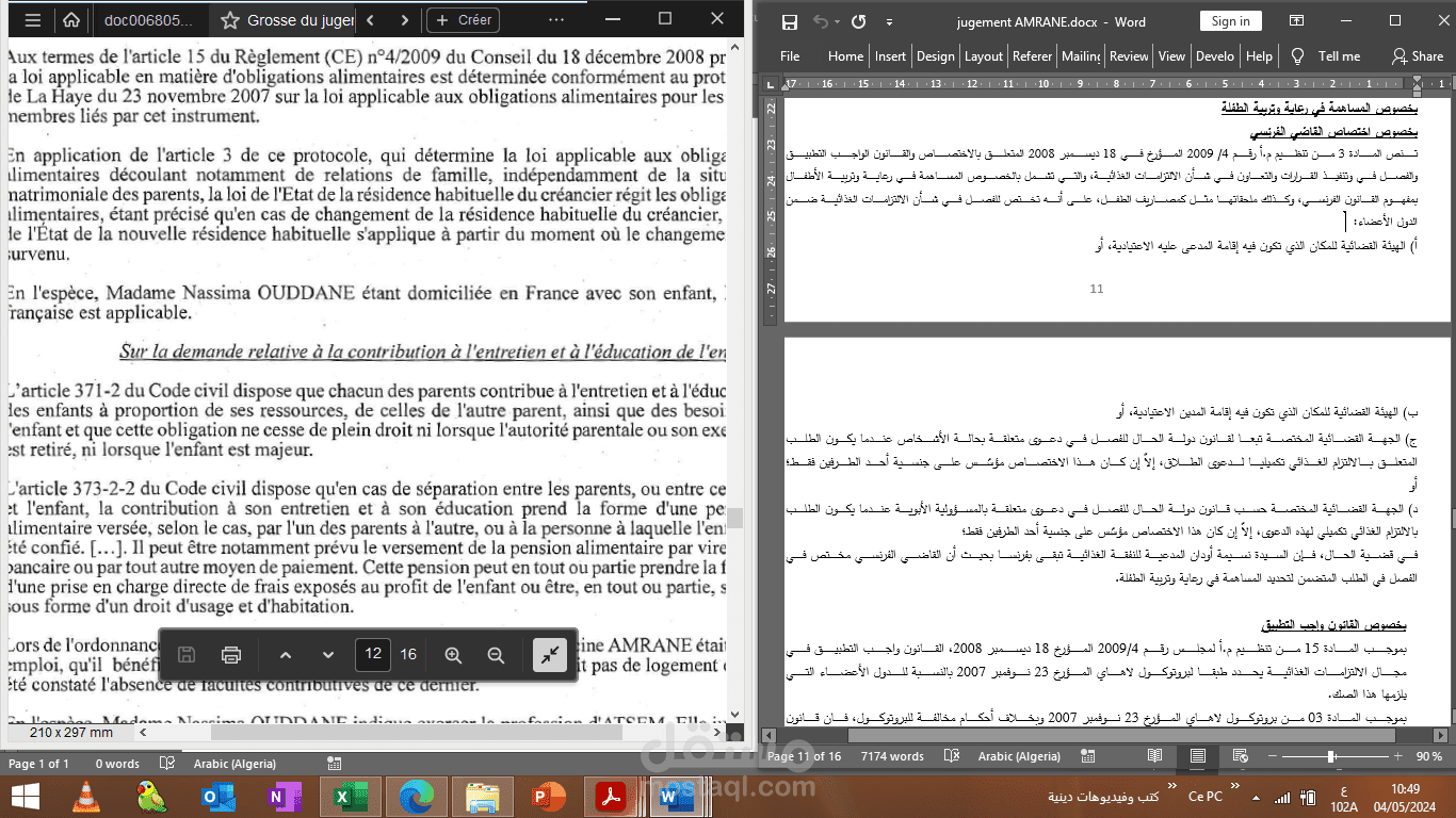 ترجمة نص قانوني (حكم طلاق ) من اللغة الفرنسية إلى العربية صادر عن محكمة ليون القضائية