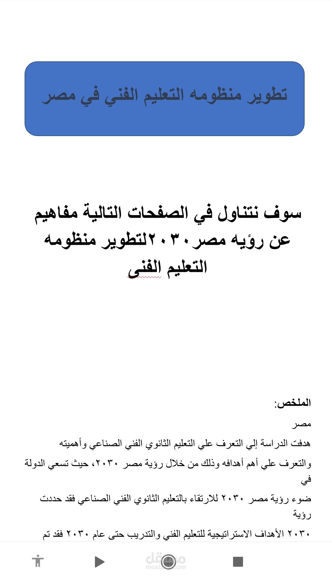 دراسة وتحليل الوضع الحالي للتعليم الفني في مصر وتحديد نقاط القوة والضعف.