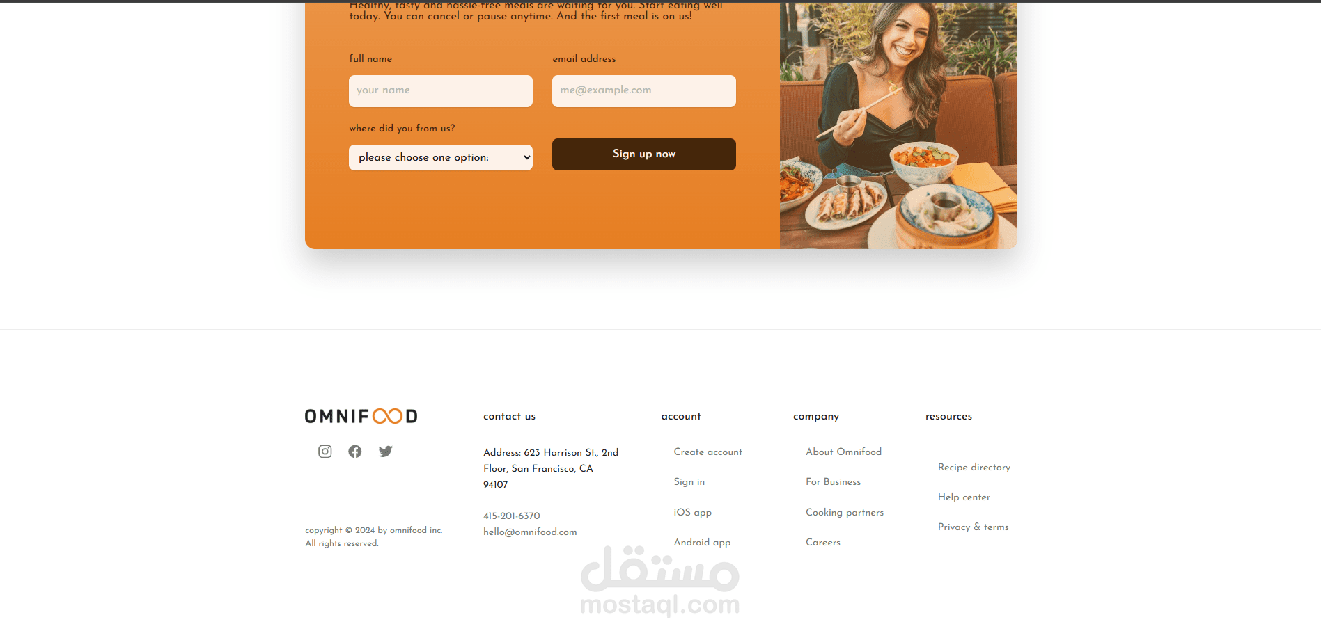 اسم المشروع: Omnifood – صفحة هبوط احترافية لخدمة توصيل وجبات