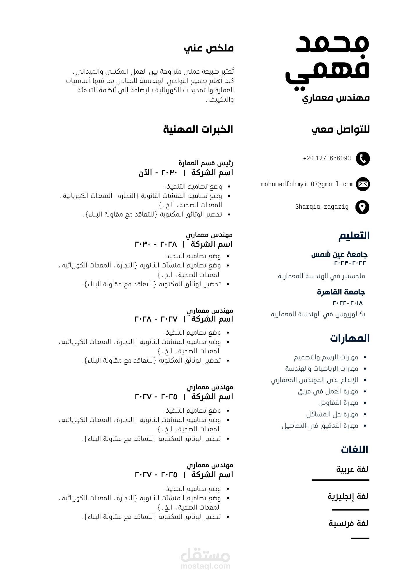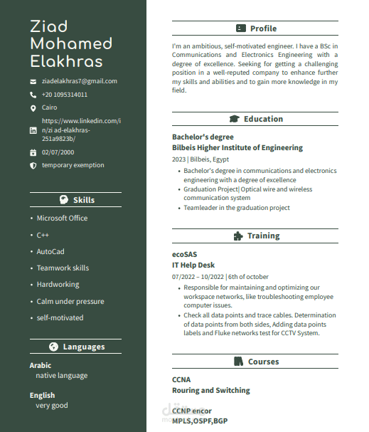 اذا كنت تريد سيرة ذاتية احترافية تتضمن الآتي لا تتردد: