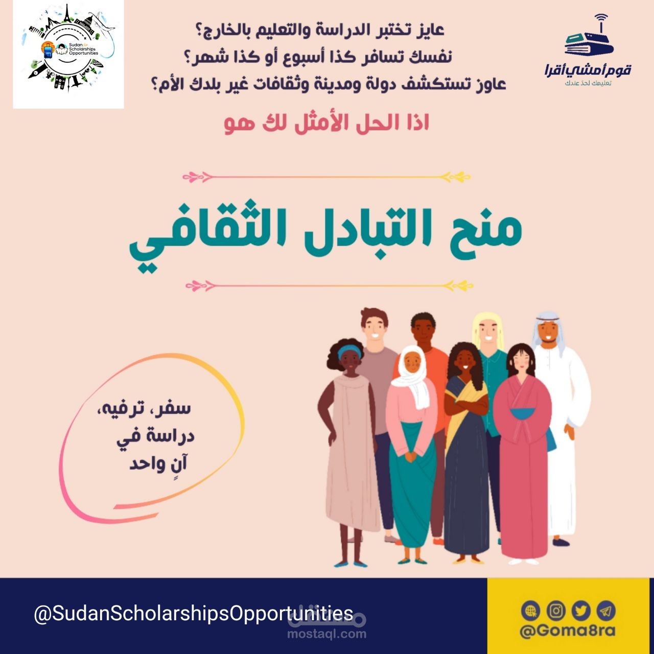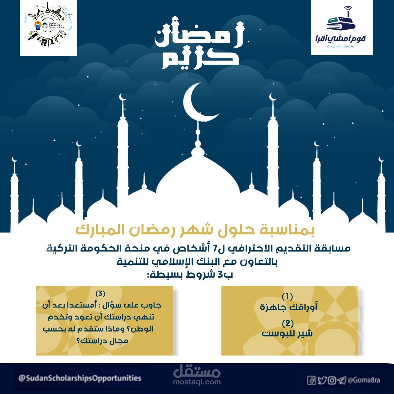 عملت كمصمم في قسم التصميم الخاص بمؤسسة ( قوم امش أقرا) وهي مؤسسة تعليمية تهدف لتقديم خدمات وكورسات تعليمية،. كما كنت المصمم المسؤول من قسم التعريف بالمنح التابع للمؤسسة