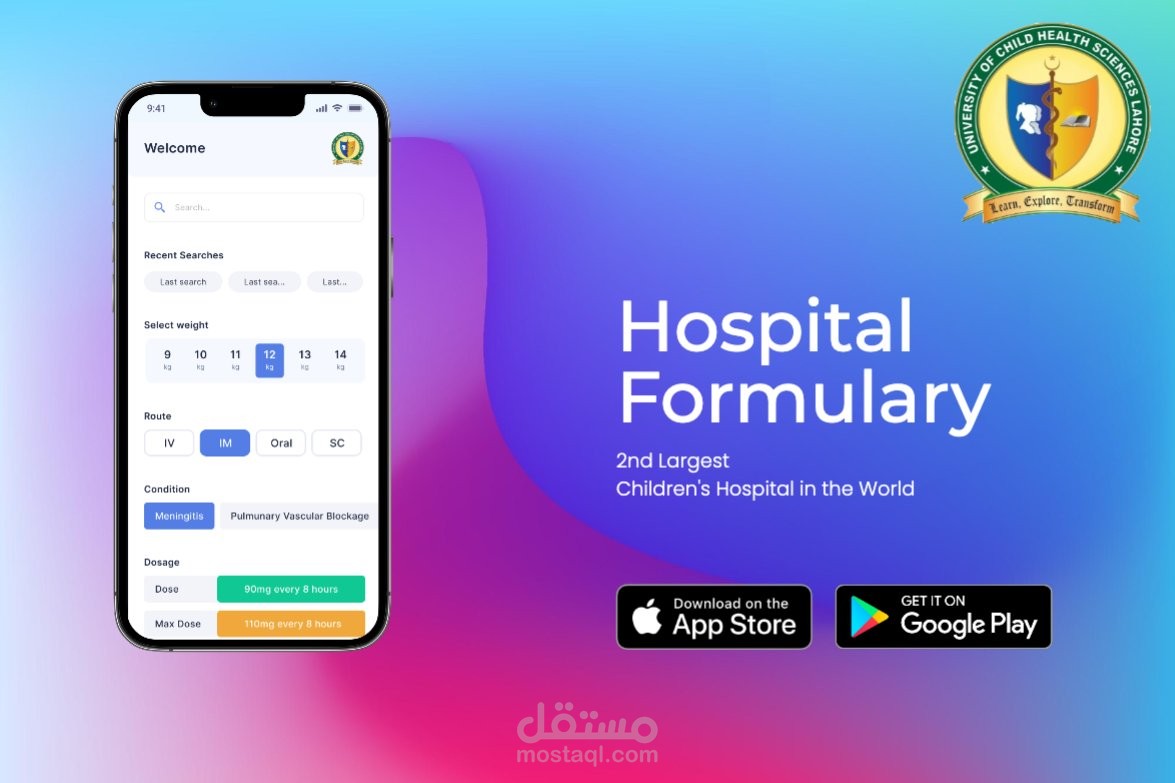 تطبيق موبايل للاطباء لتحديد الجرعات عن طريق ادخال عدة مدخلات مثل الوزن والعمر وهكذا