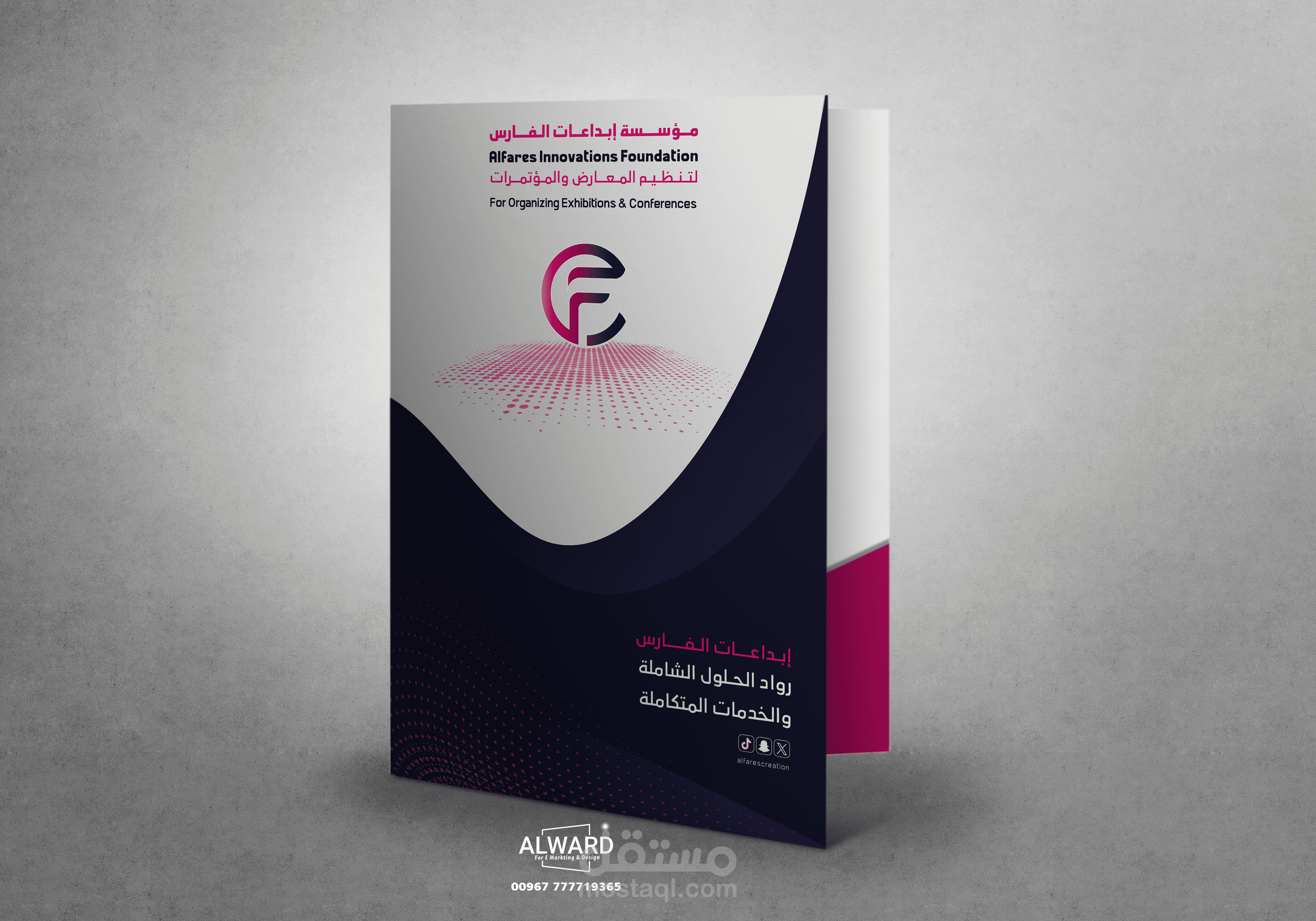 تصميم فولدر مع حاضن ورق داخلي لمؤسسة إبداعات الفارس بالمملكة العربية السعودية