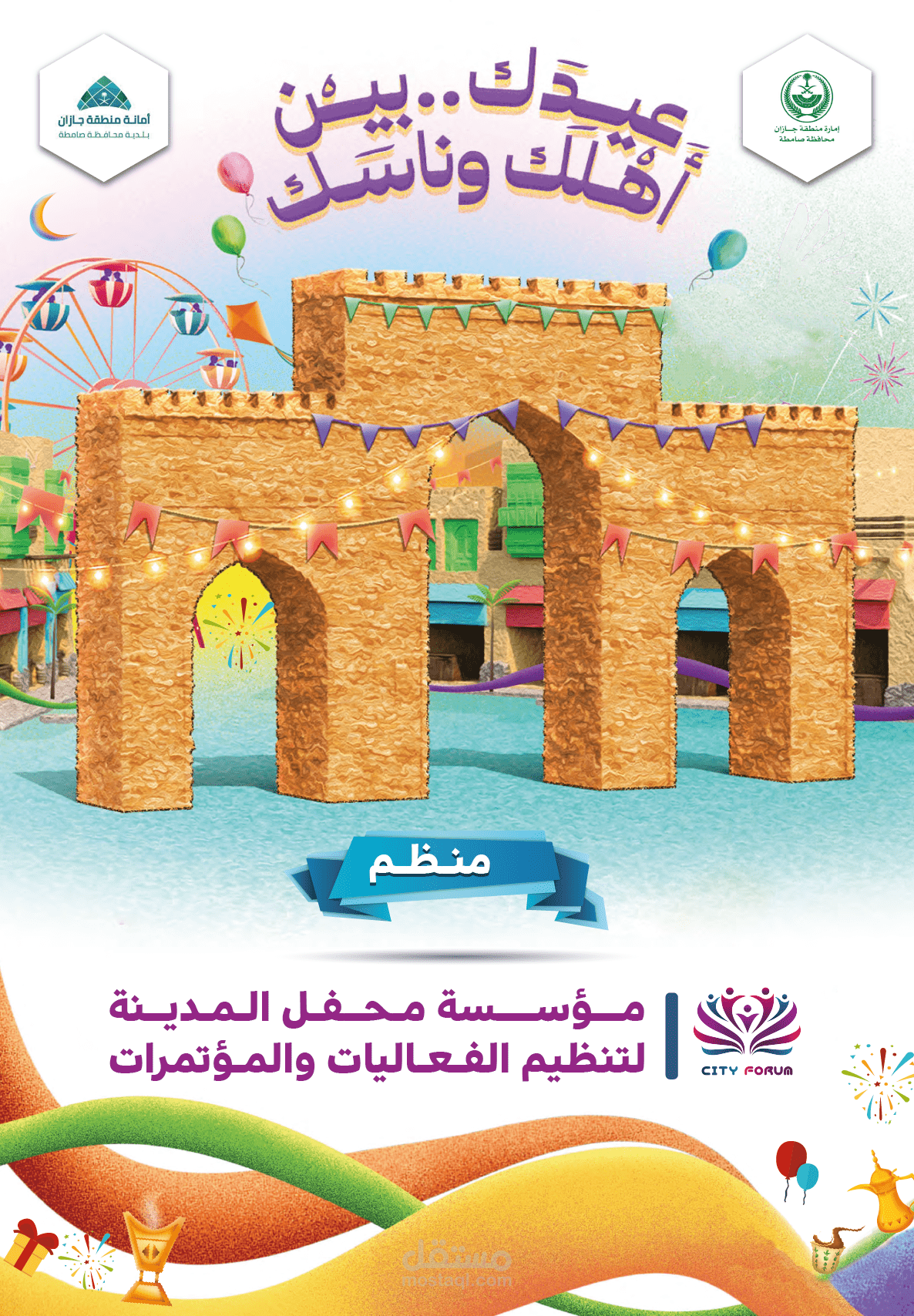 تصميم نموذجين لبطاقة تنظيم فعالية بهوية عيد الفطر المبارك
