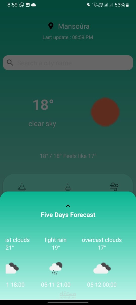 تطبيق لمعرفة الطقس حاليا في أي دولة عن طريق إدخال اسم المدينة في ال search bar