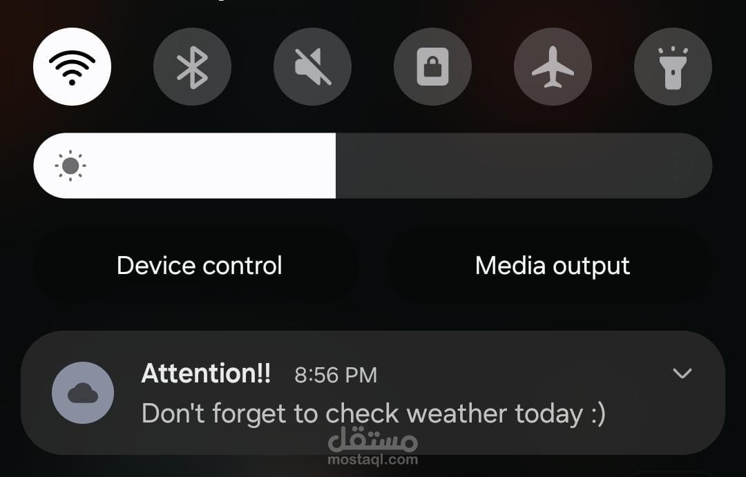 وأيضا يحتوي التطبيق على إشعار يظهر كل 12AM للتذكير بتفقد الطقس
