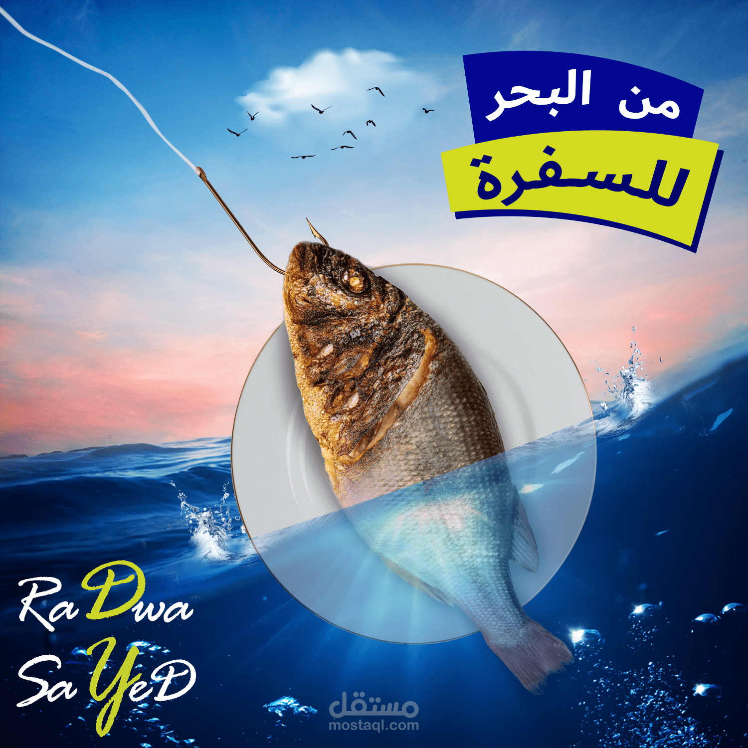 اعادة تصميم اعلان لمطعم سمك باستخدام برنامج فوتوشوب