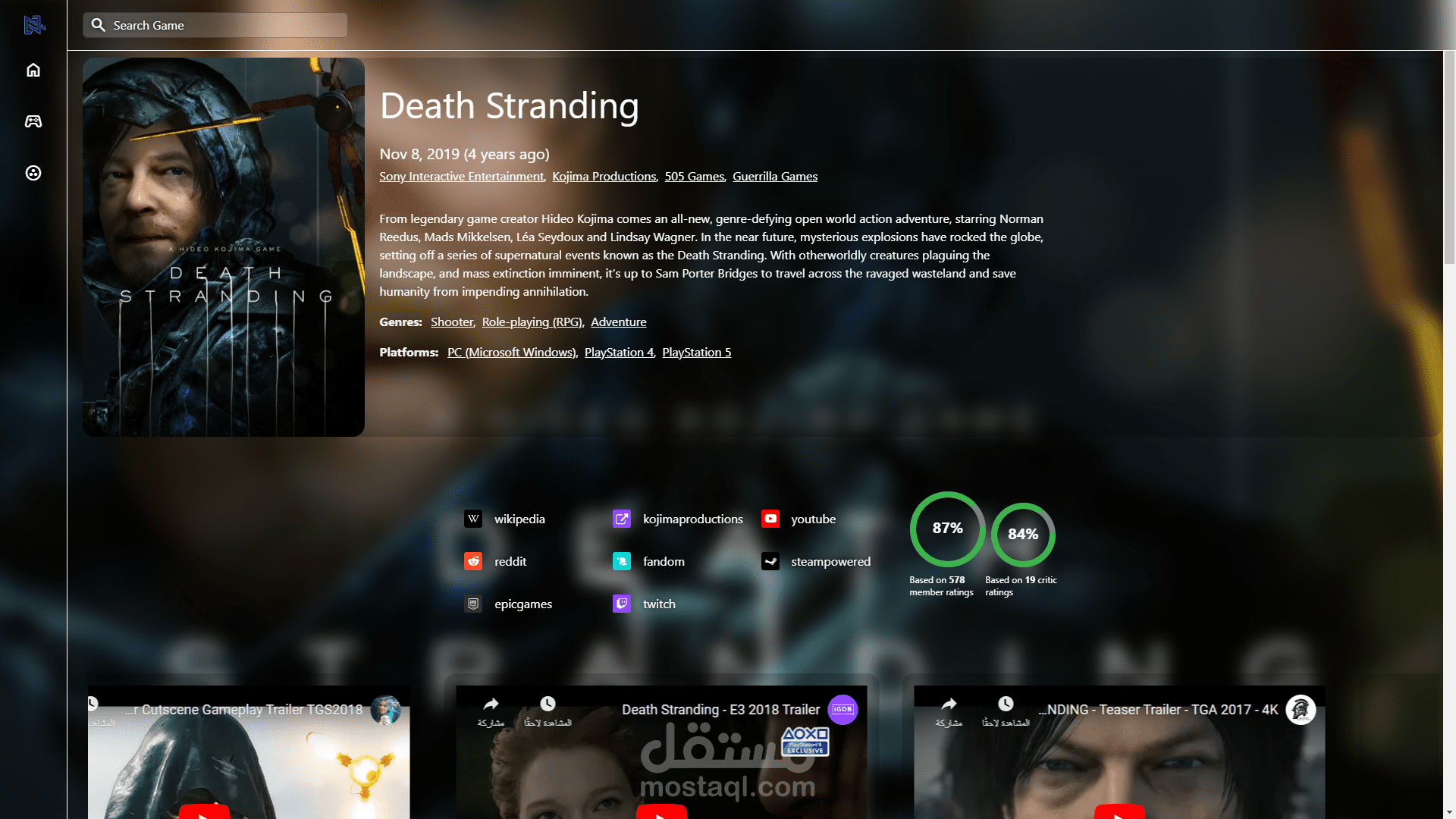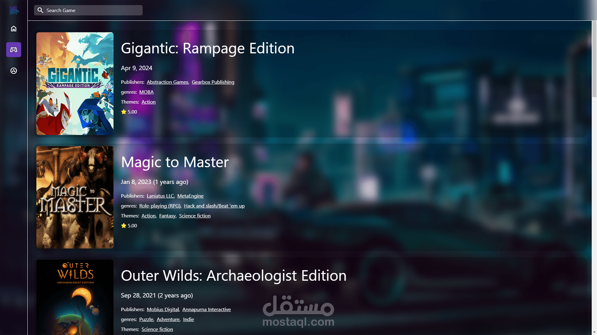 موقع باستخدام React ,Tailwind,igdb api يستخدم لعرض 250000 لعبة الكترونية ويمكنك البحث عن اي لعبة تريد