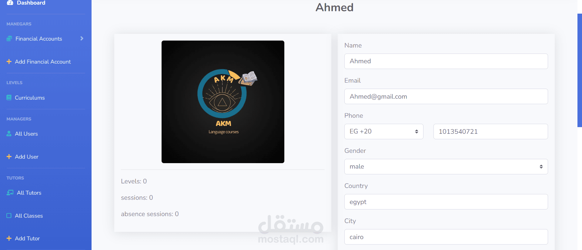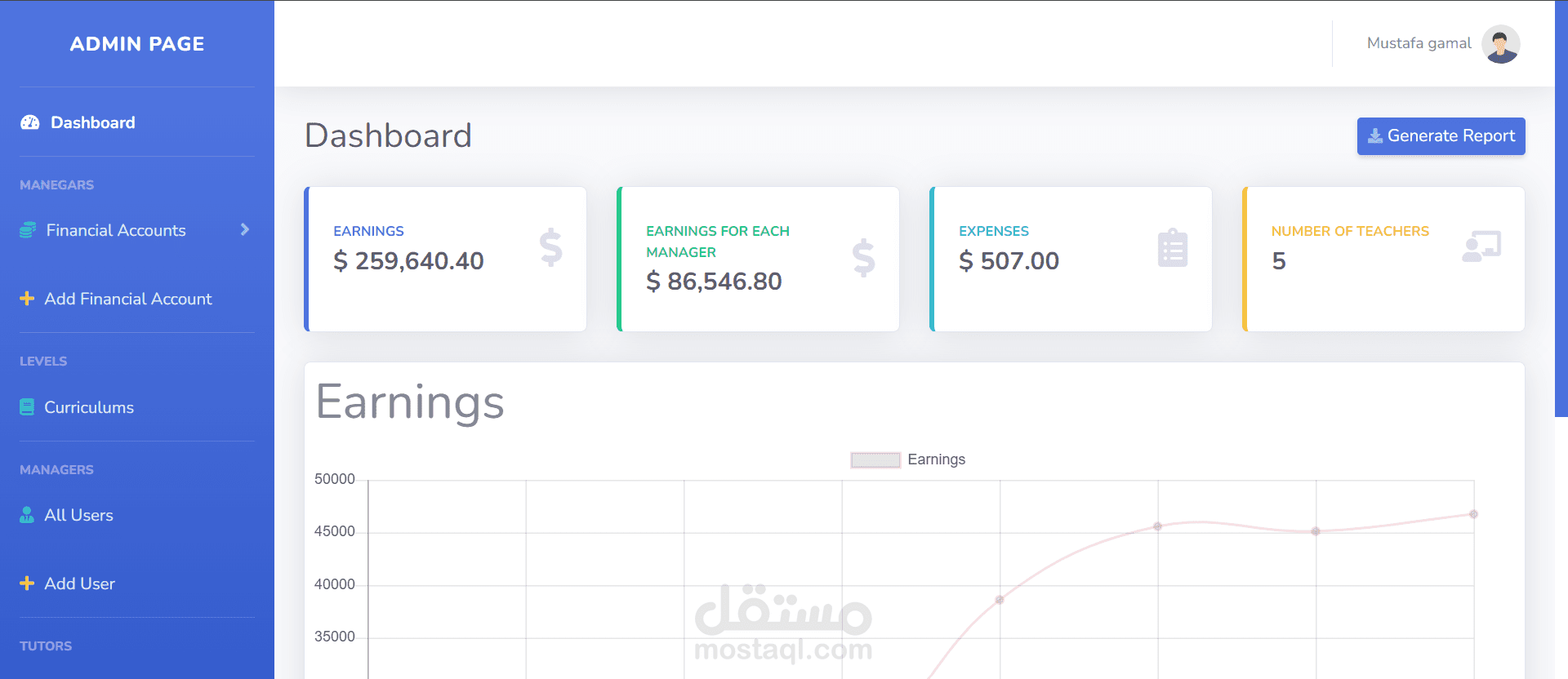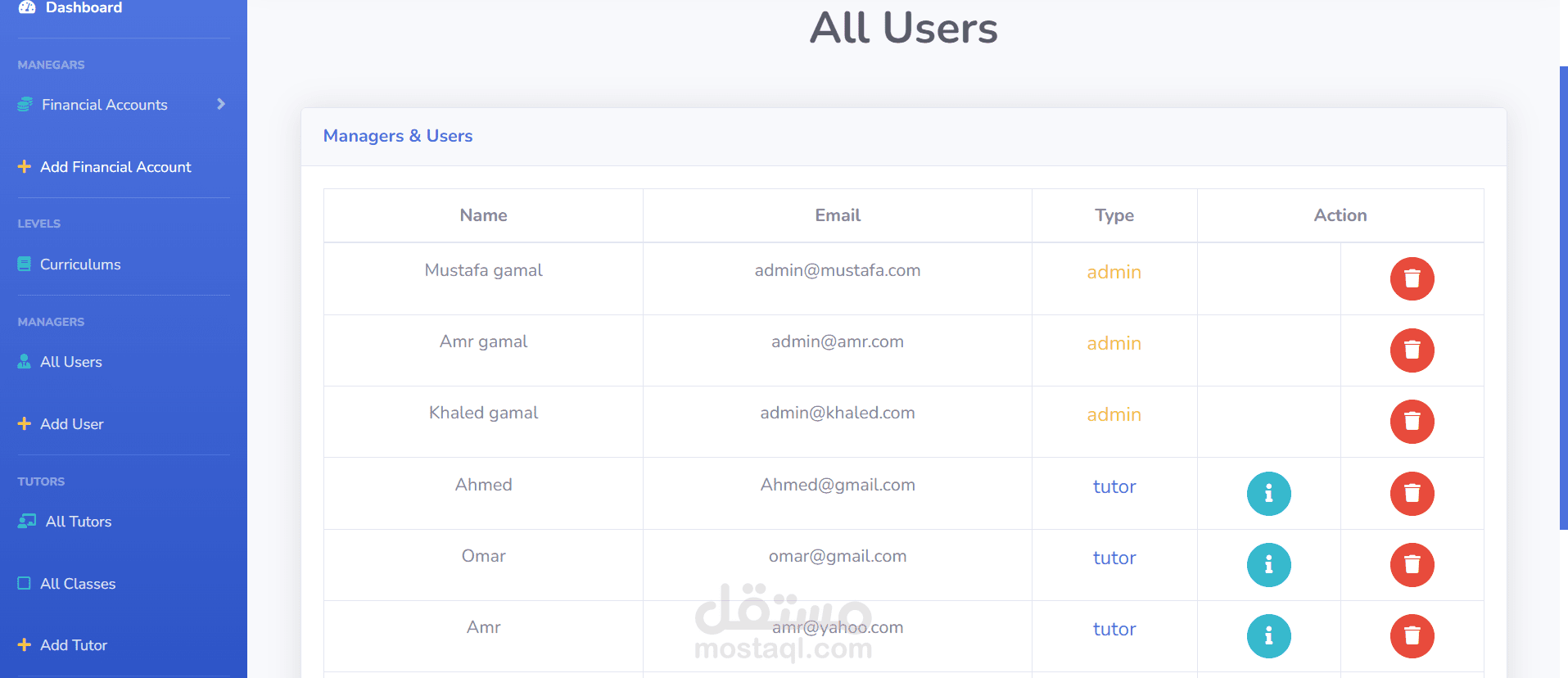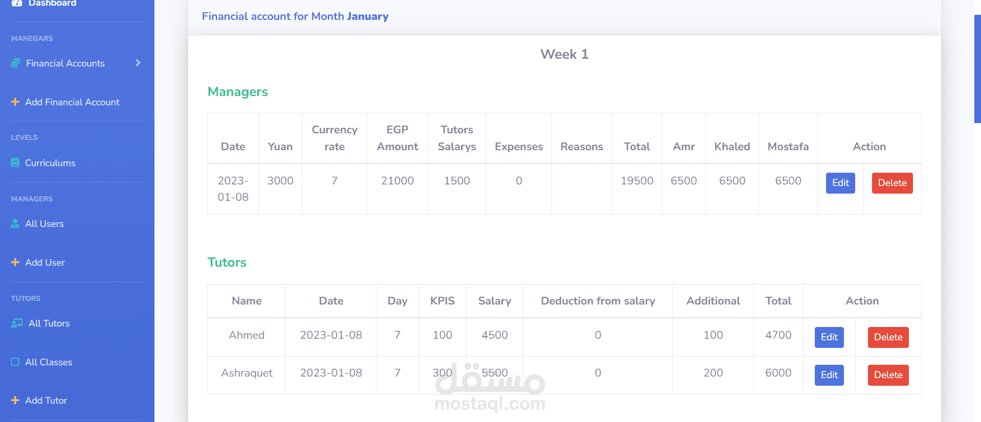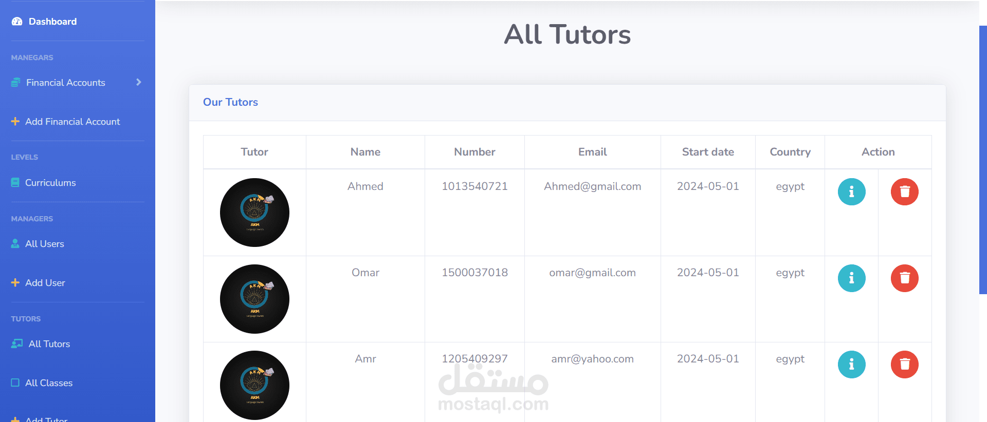 و انشاء وتصميم كامل لdashboard و ادارة الموقع وقاعدة بيانات كاملة للمدرسين والطلبة داخل و خارج مصر.