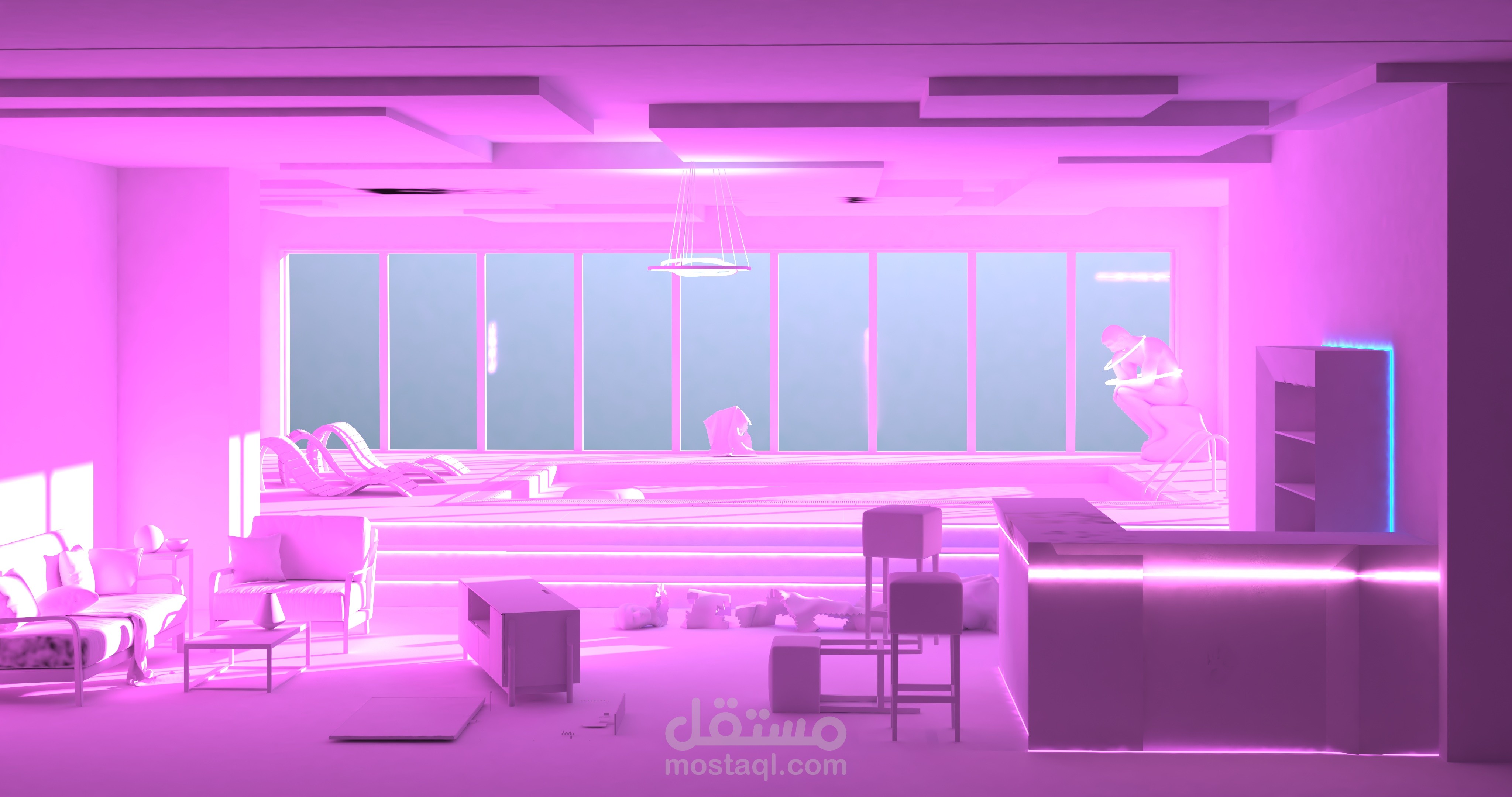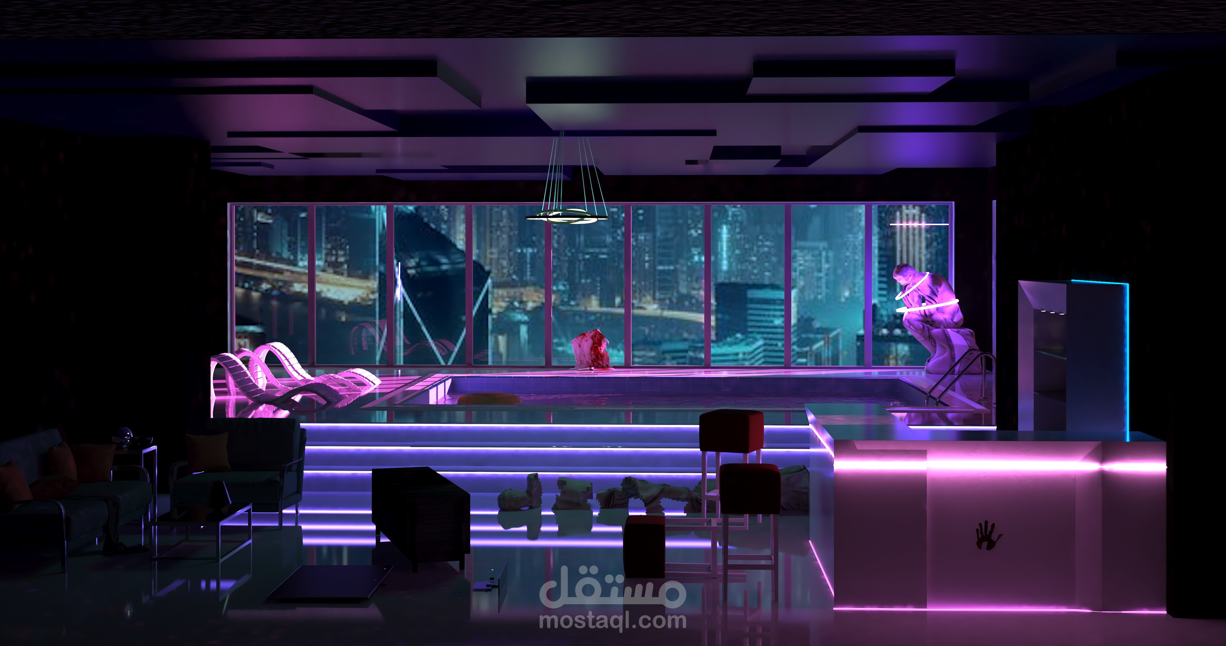 Interior design for Sherif’s apartment in the novel “ The Blue Elephant” in Cyberpunk style ( 3ds Max & Vary ).