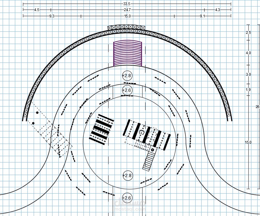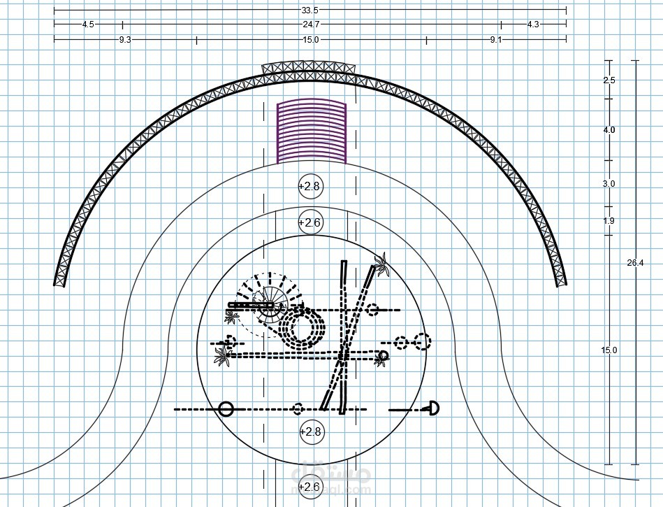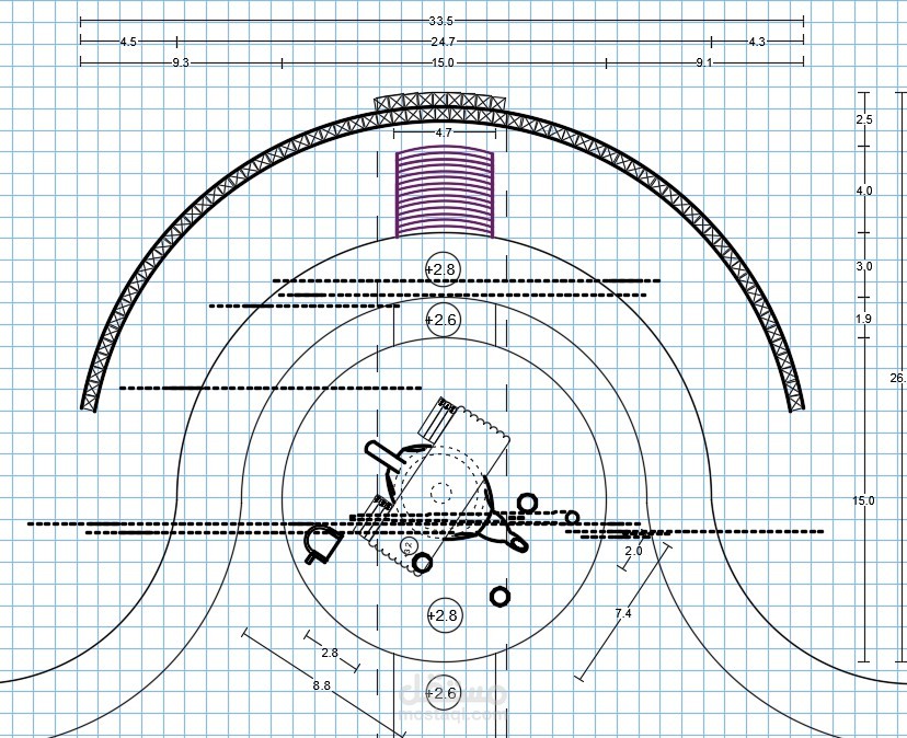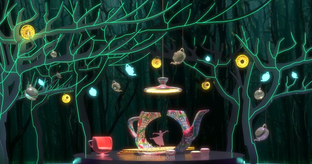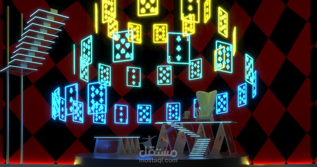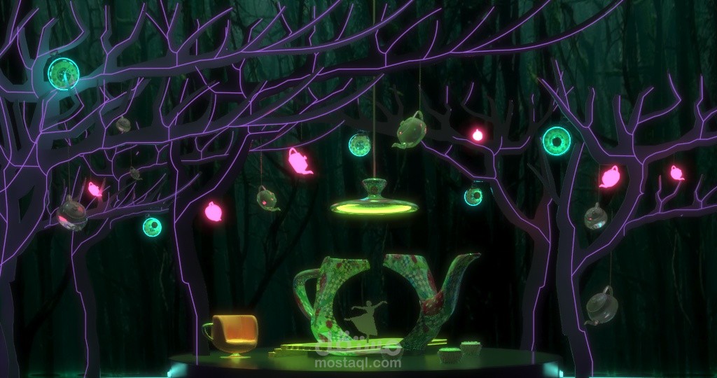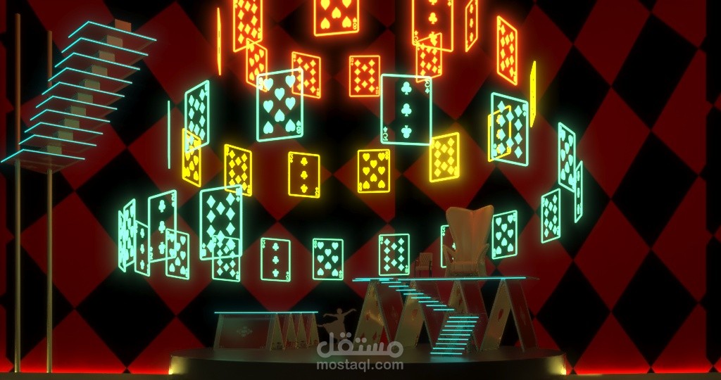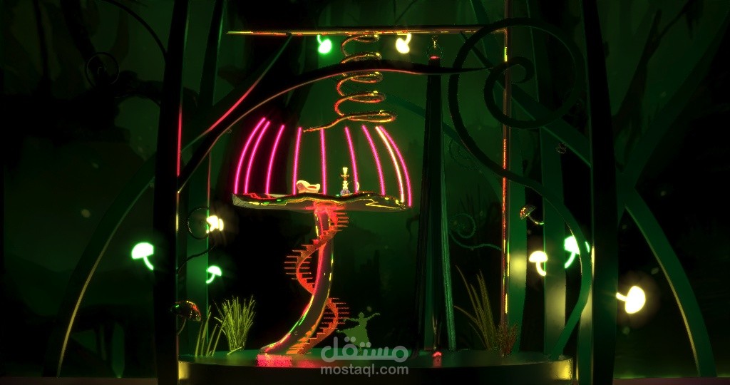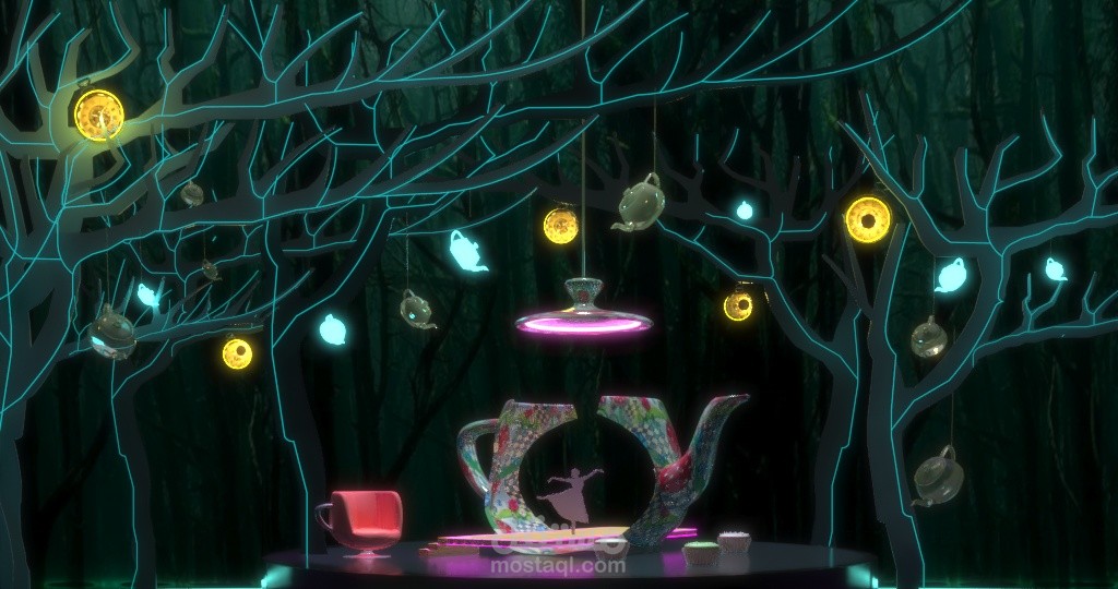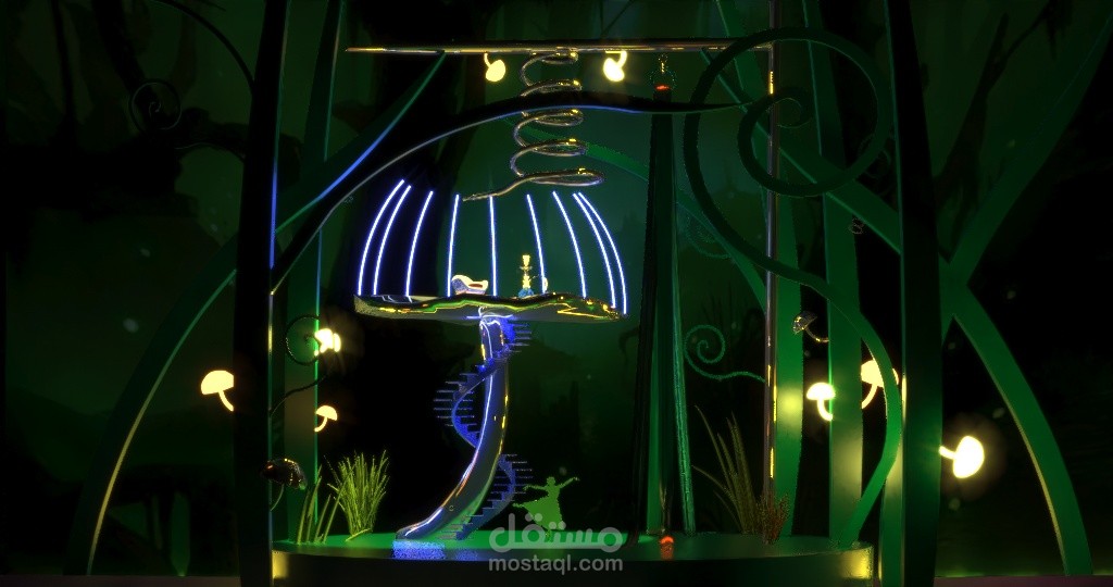 This is my graduation project, I made an open-air theatre for the dance show Alice in Wonderland, first, I created the shape of the stage itself, I made the chairs of the audience in the middle and it could rotate 360 degrees around its axis to watch the show. to represent the trick where Alice goes into the rabbit hole, I made the curved path that goes around the round stages to represent the transition between the real world and Wonderland where the dancers walk on these paths to travel between the two worlds and the different scenes meanwhile the area in the middle " audience " follows the movement of the dancers, each round stage represent a scene, so there is the start and End scene " the backyard party", the first scene in wonderland " Mad hatter's tea party", "Caterpillar", and finally the "Trail". I also made costumes for the characters based on the type of dance they perform But I'll publish them in a different project.