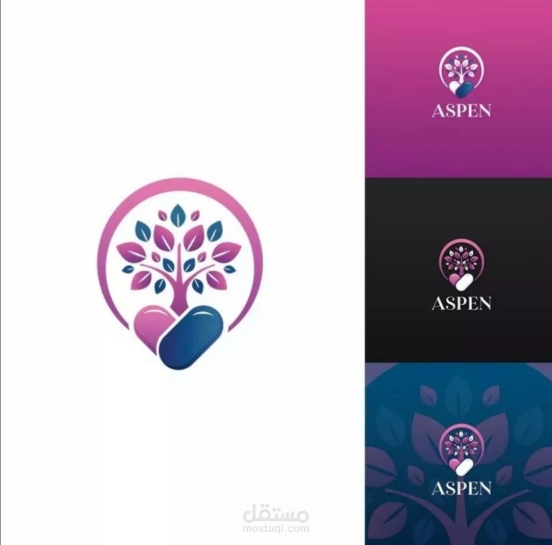 شعار أيقوني لصيدلية وشركة أدوية،. الشعار يعكس مفهوم الأدوية على شكل شجرة الحياة المستنبطة من القيمة العلاجية