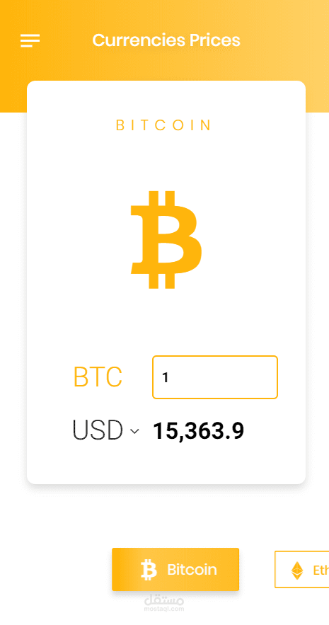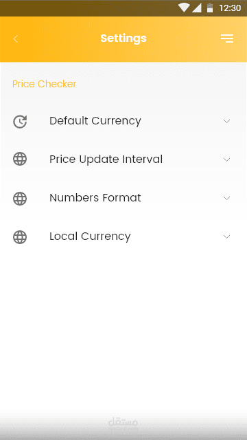 تصميم وبرمجة ونشر تطبيق على منصة Android, التطبيق مخصص للحصول على آخر تحديثات اسعار العملات المشفرة اول بأول بقيمة عملتك الورقية المفضلة او عملتك المحلية بشكل تلقائى وسهل, التطبيق يدعم: بتكوين, إيثريوم, لايت كوين, داش, ريبل, نيم, نيو, مونيرو, زيكاش, بتكوين كاش. التطبيق يدعم عرض الاسعار فى اكثر من 65 عملة ورقية.