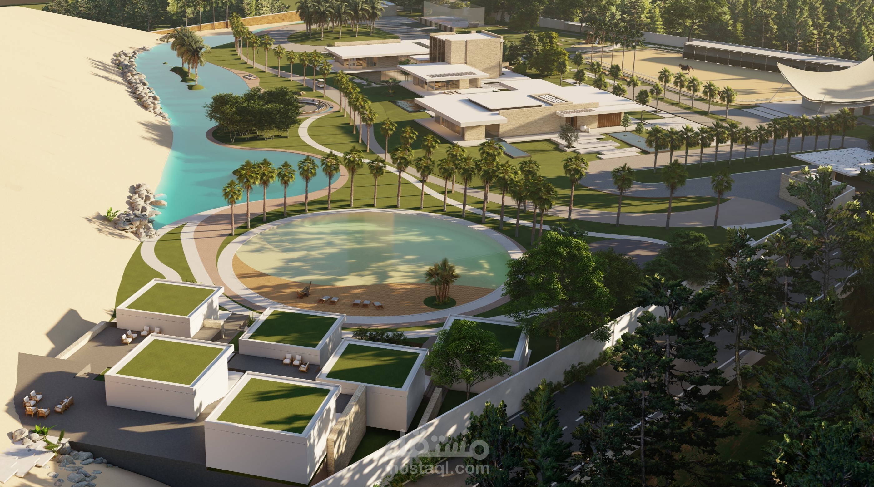 تم تصميم المنتجع على مساحة 50 الف متر مربع في مدينة الرياض