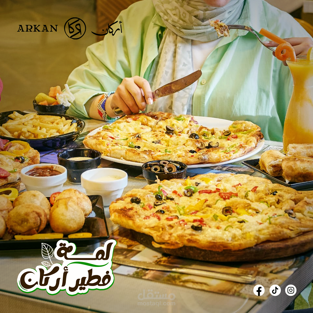 مطعم اركان مطعم يقدم مختلف انواع المأكولات الشرقيه مثل الفطائر ويقدم ايضاً مجموعة متنوعه من الحلويات مثل البان كيك