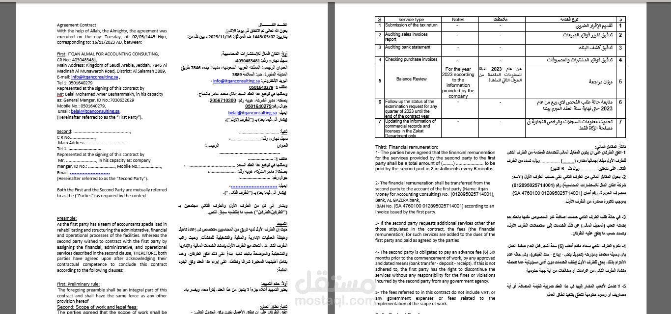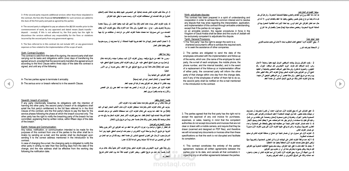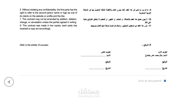 تم تصميم عقد مبدأي بأستخدام وورد .