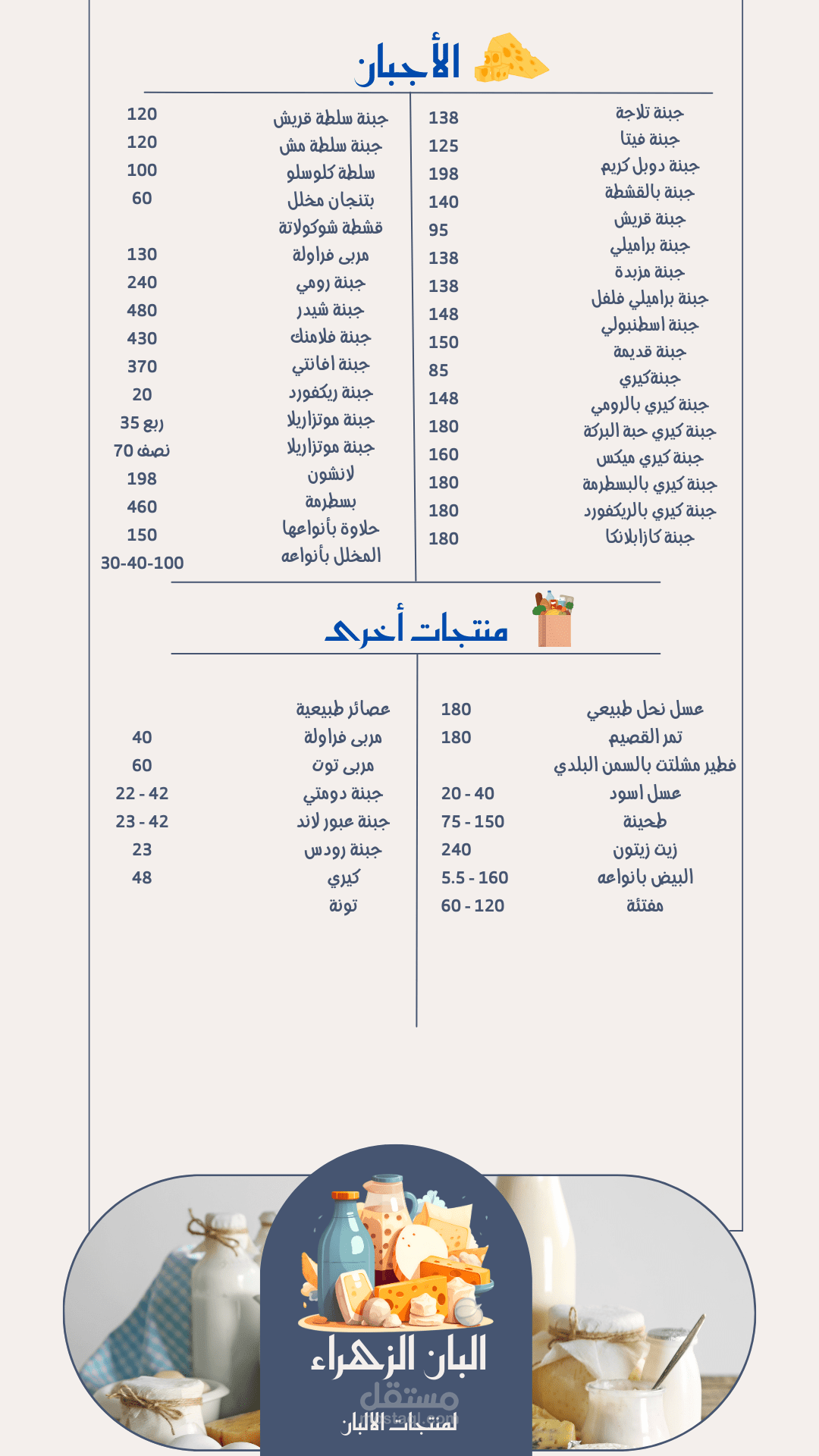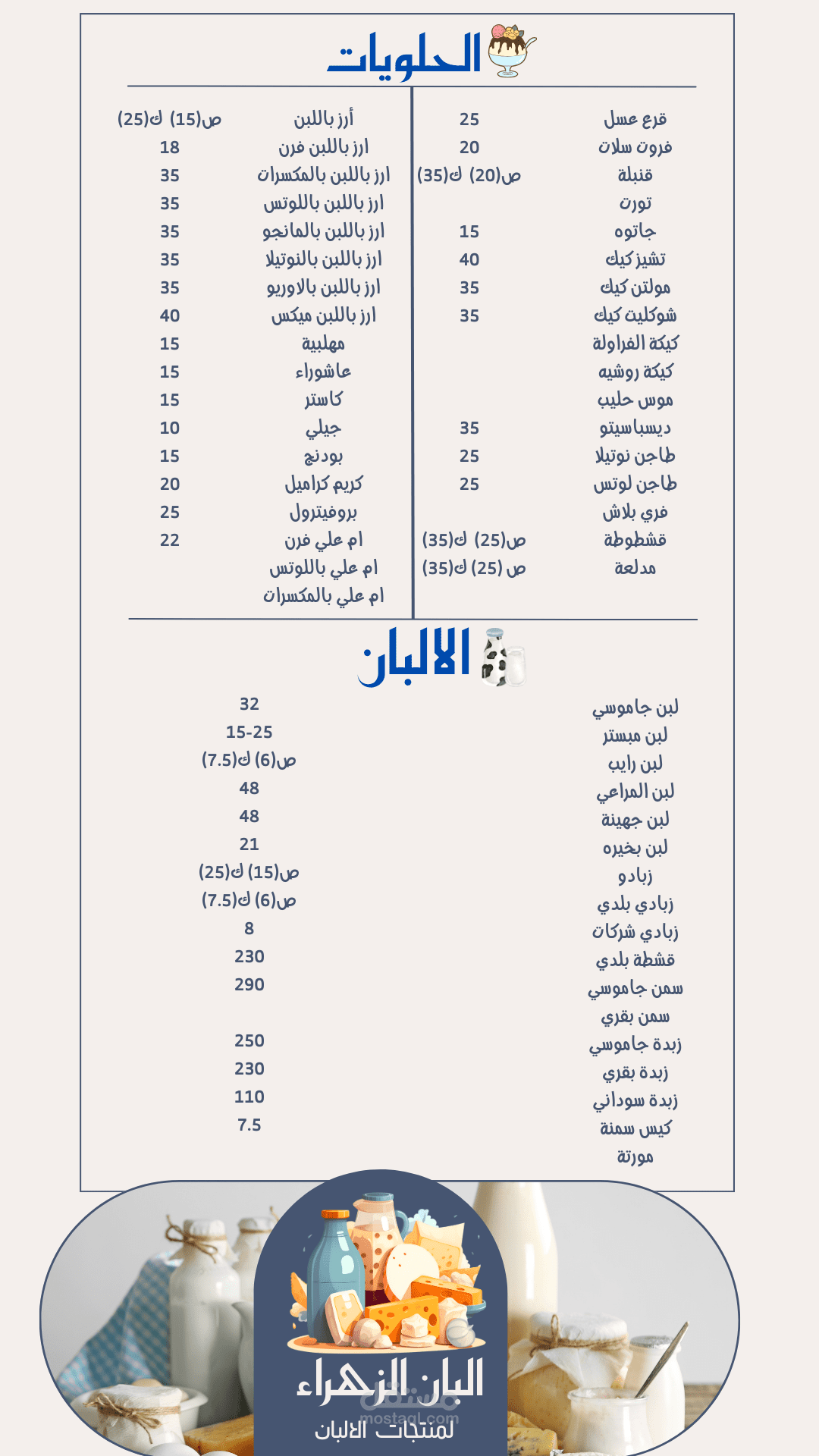 لافتة لمتجر البان وايضا قائمة بالاصناف المتواجدة لديه