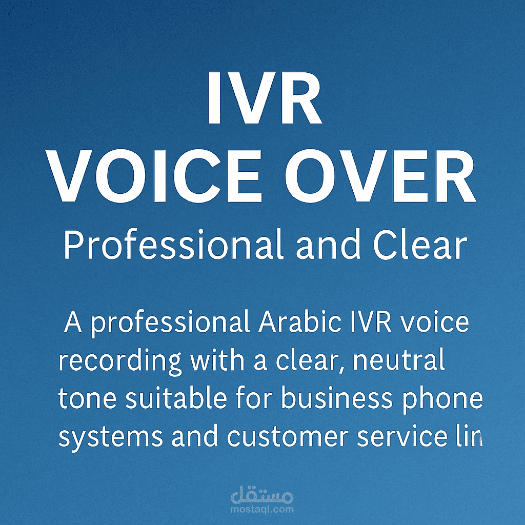 نموذج من التعليق الصوتي العربي لنظام الرد الصوتي التفاعلي (IVR) مُسجَّل بنبرة محايدة واحترافية. مثالي لأنظمة خدمة العملاء، وقوائم الهاتف، وخطوط المساعدة للشركات. يتميز بوضوح الصوت وهدوءه، وأسلوبه الصوتي المُناسب للشركات.