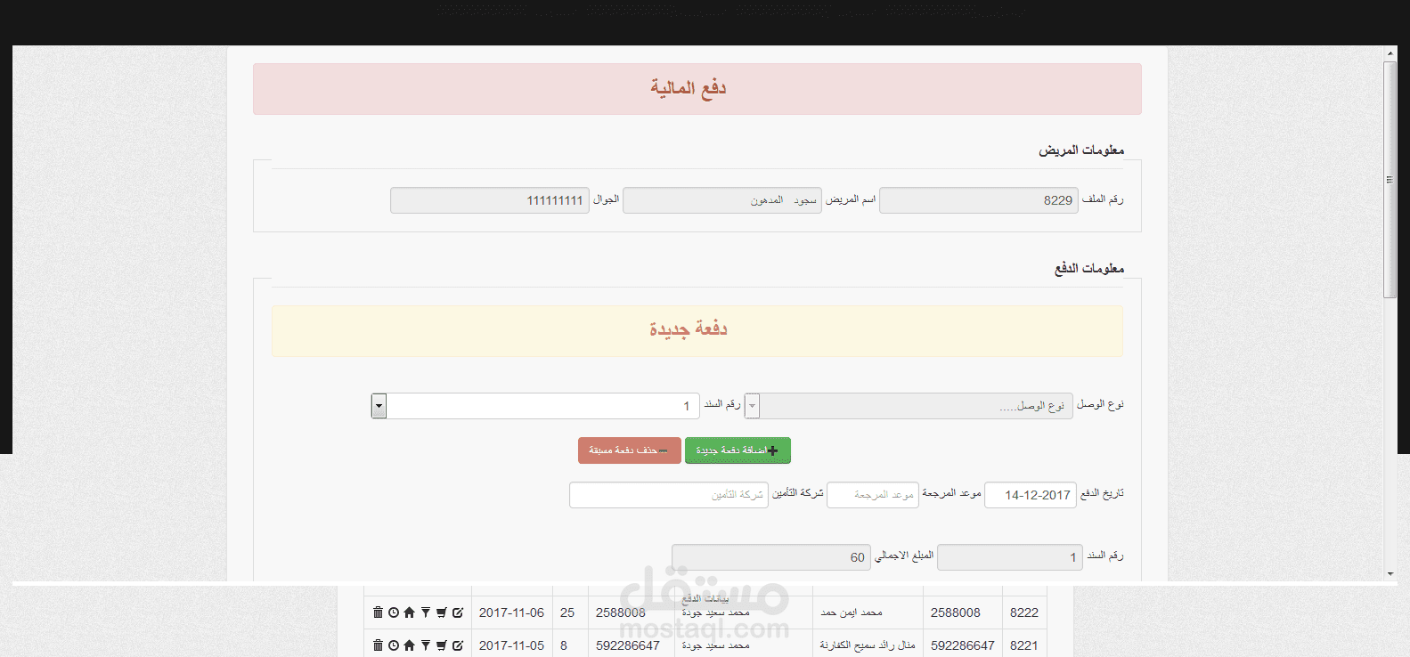 10- تحرير ملاحظة لمريض معين تظهر عند الدخول على ملفه