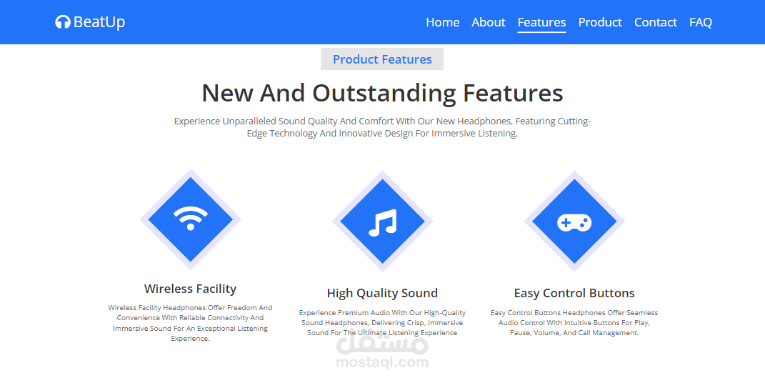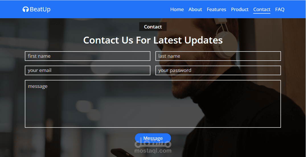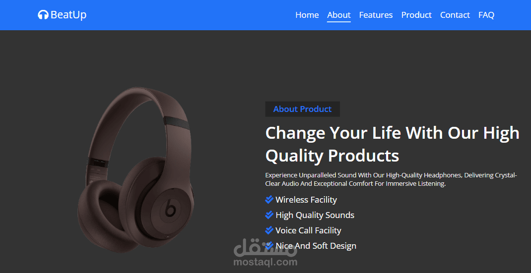 تصميم موقع ويب للصفحة المقصودة للمنتج الأول على الهاتف المحمول لتطوير الواجهة الأمامية.
