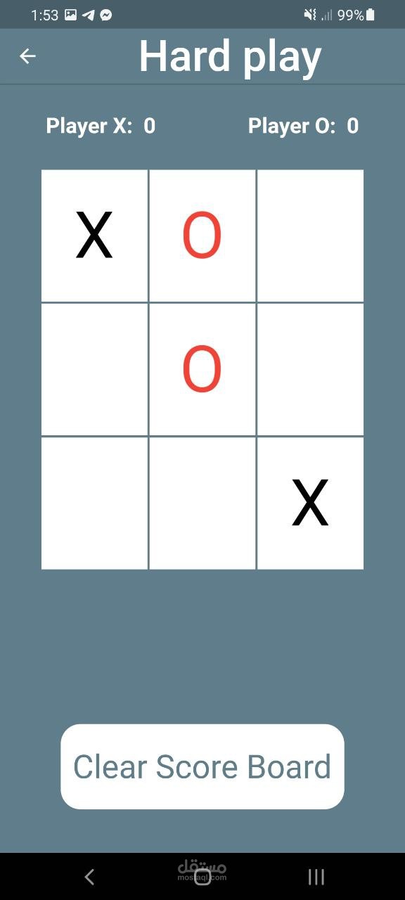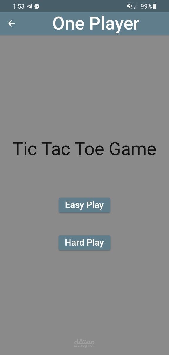 1. خيار لاعب واحد: يتضمن اللعب ضط خوارزمية , يوجد فيها مستوى سهل , ومستوى صعب , في المستوى الصعب تم استخدام خوارزمية ليكن من الصعب التغلب عليها في اللعب.