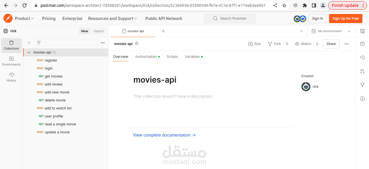 التطبيق هو rest API خاص بالأفلام، أنشأت السرفر باستخدام اكسبرس، بالموازاة مع MongoDB لإدارة قواعد البيانات.