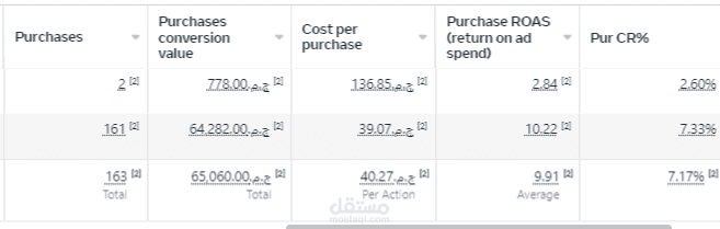 وصورة اخري فيها ROAS ود العائد علي الاستثمار بتاعنا