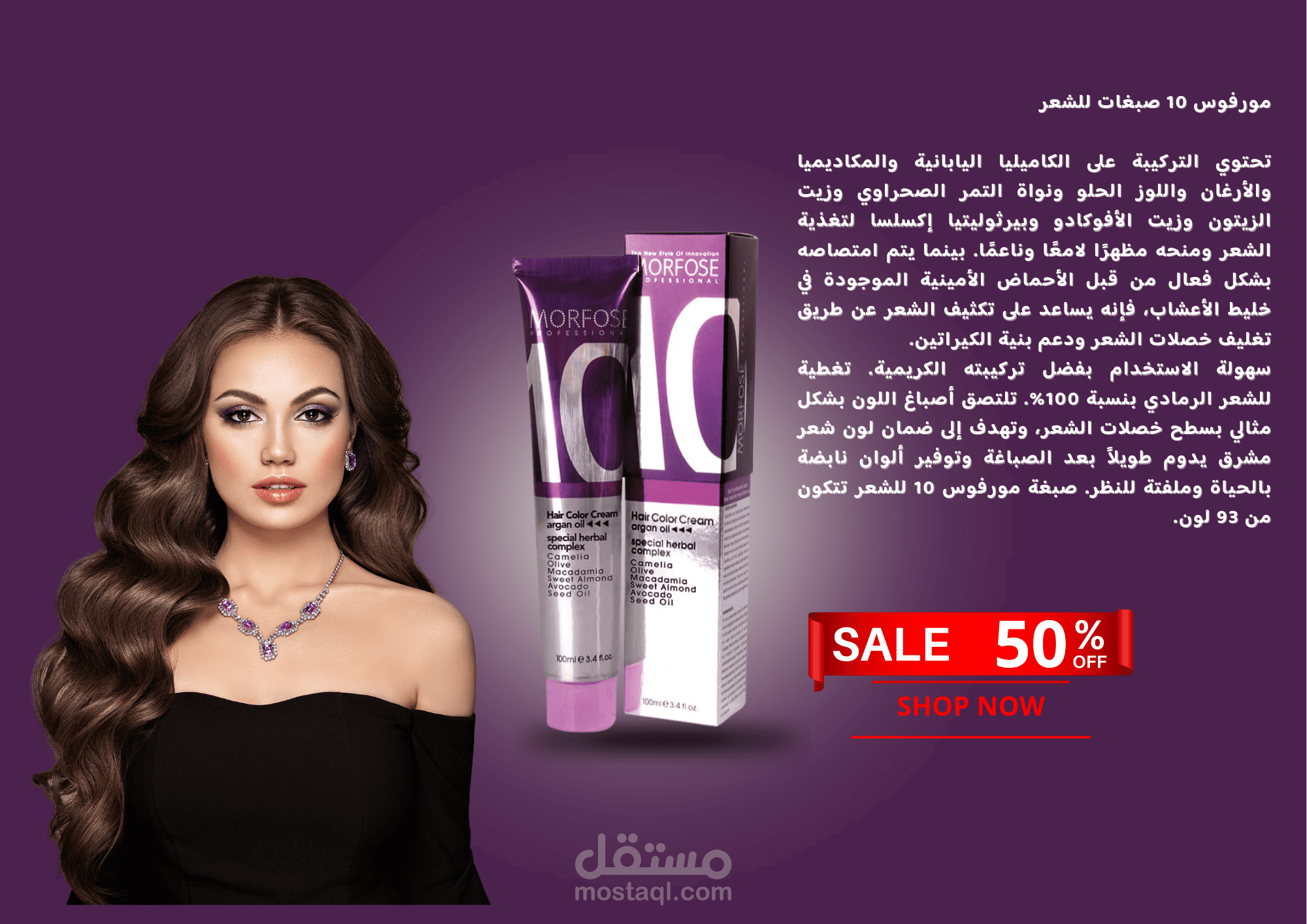 اعلان تسويقي لماركة صبغة الشعر وعروض خصم