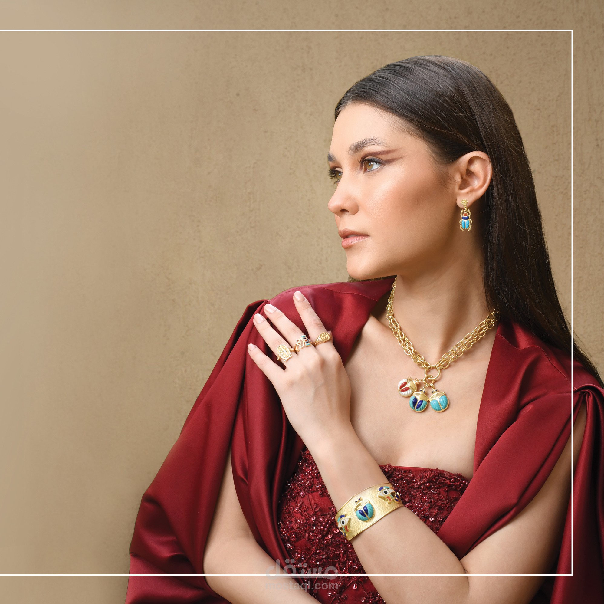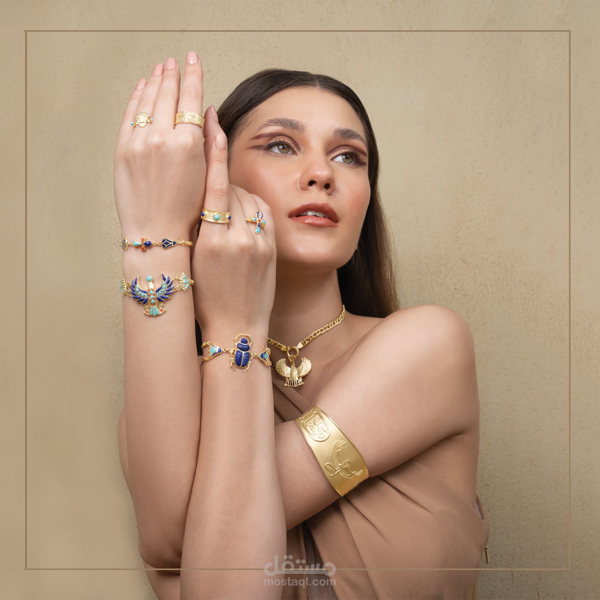 Nefert is an Egyptian brand that specializes in pharaonic jewelry collections, I was responsible for all of the branding and Art direction, Starting from naming and concept to the logo and all branding elements in addition to the social media presence, marketing materials, branch's interior, packaging and prints.