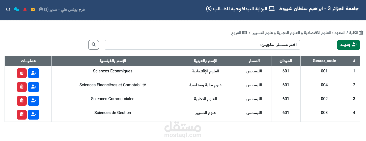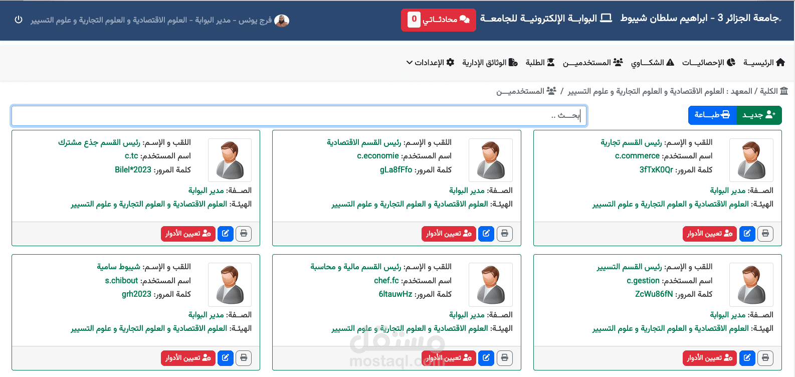 - استخراج الوثائق الإدارية(شهادة العمل، جدول أعباء التدريس)